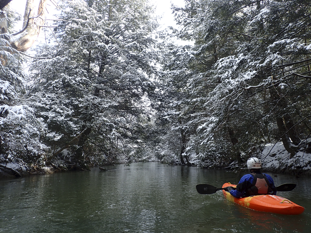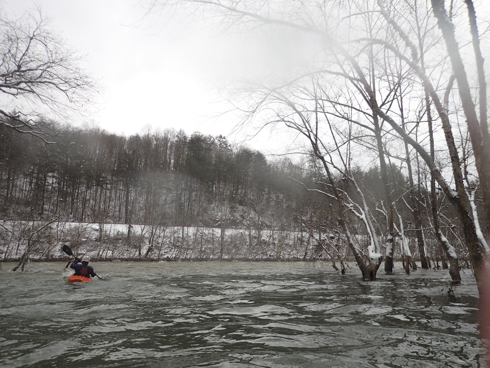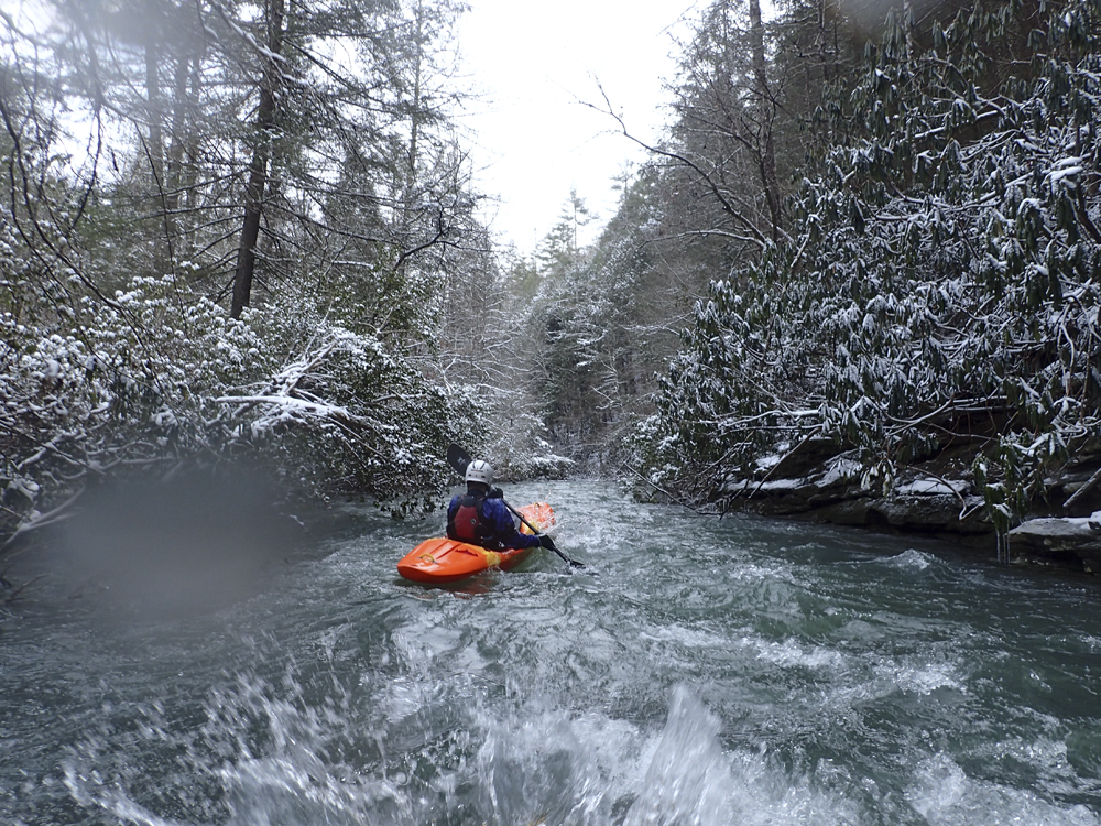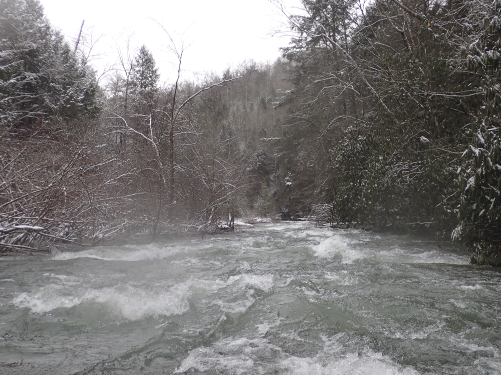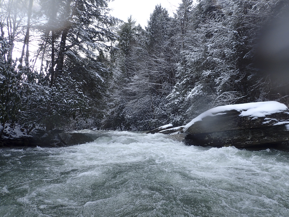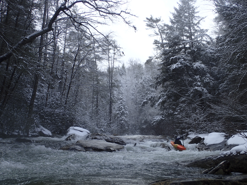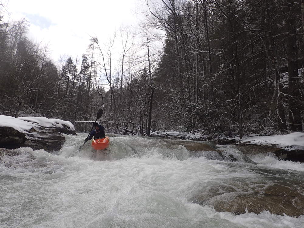 This is a nice, relatively mellow run very near Daddy's Creek on the Plateau. It requires a fair amount of water to get it going. The run is perfect for the class III boater who is looking for a nice long float that will take a good portion of the day. At 13.7 miles it is one of the longer single runs in the Plateau. For Jim and I, it took us a little over 2.5 hours of paddling downstream the whole time... but of course, going slow was not in the cards for us that day as the temperature never got over 28 degrees while we were on the water. Paddle strokes keep you warm!