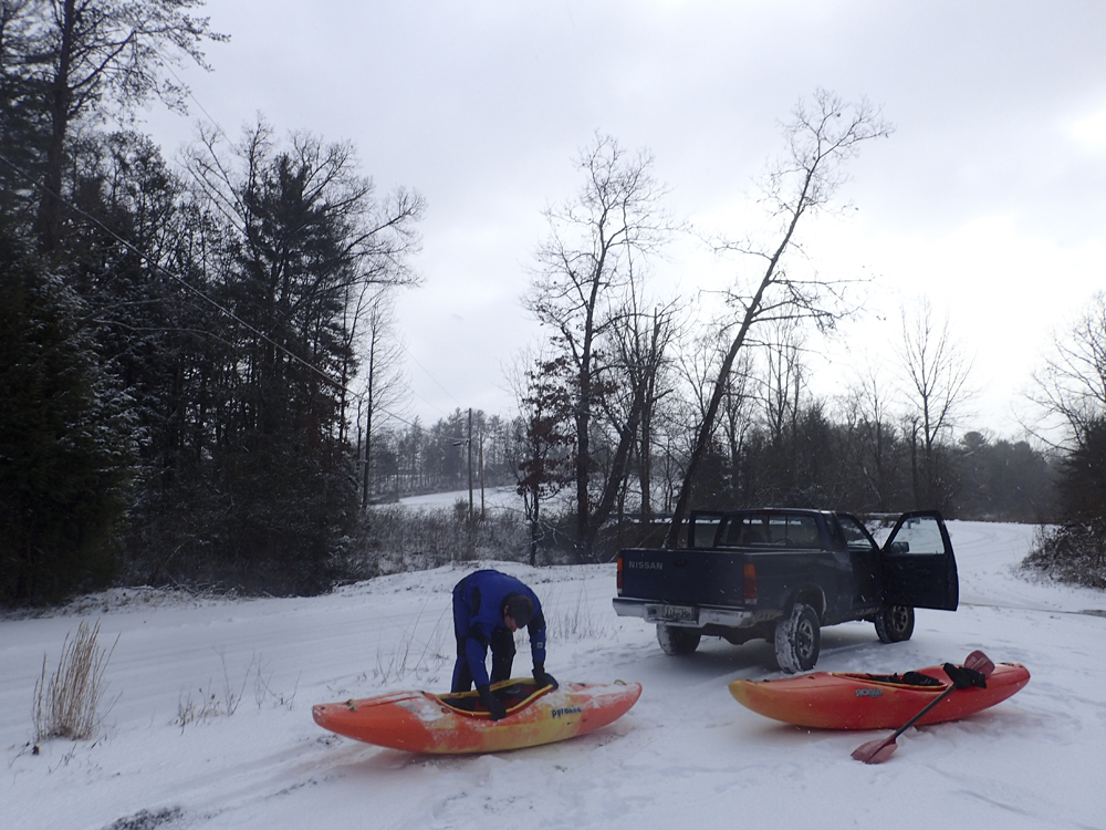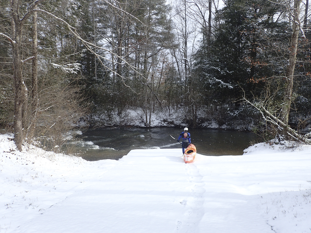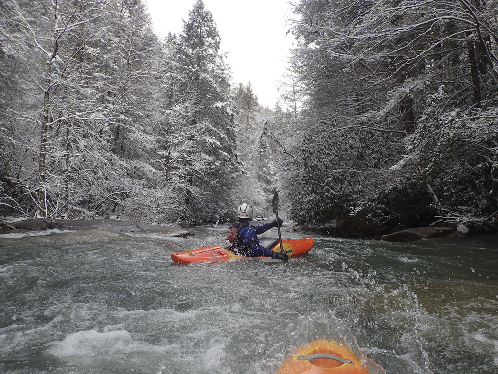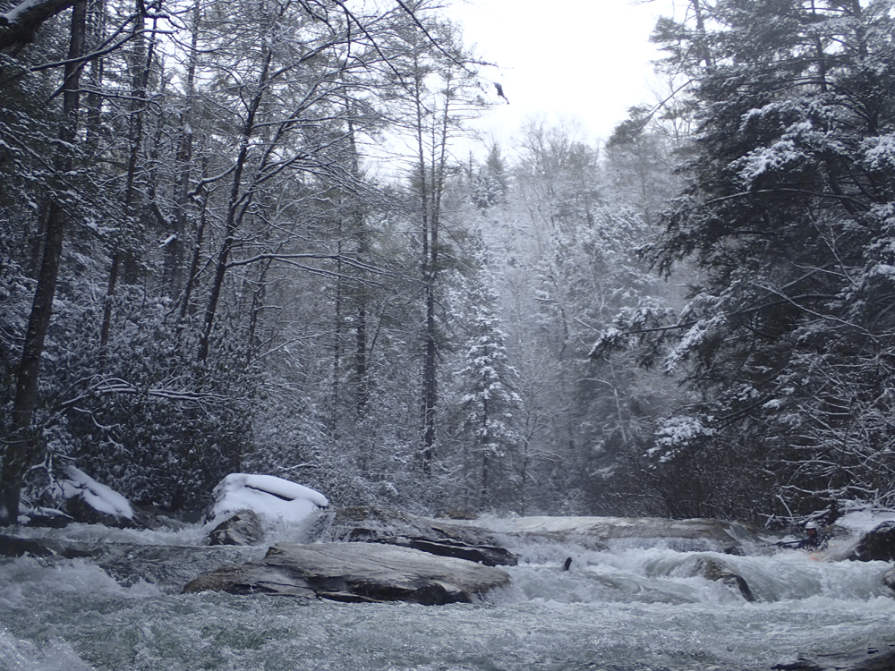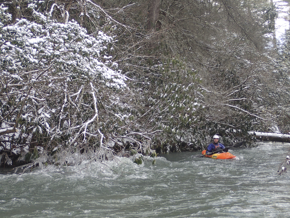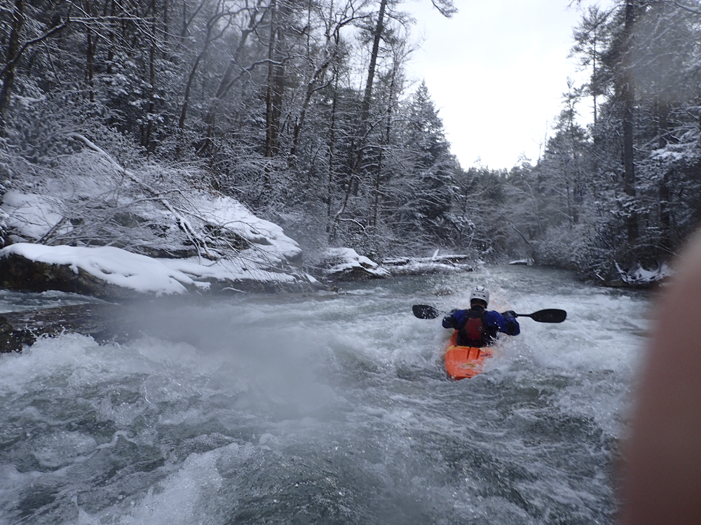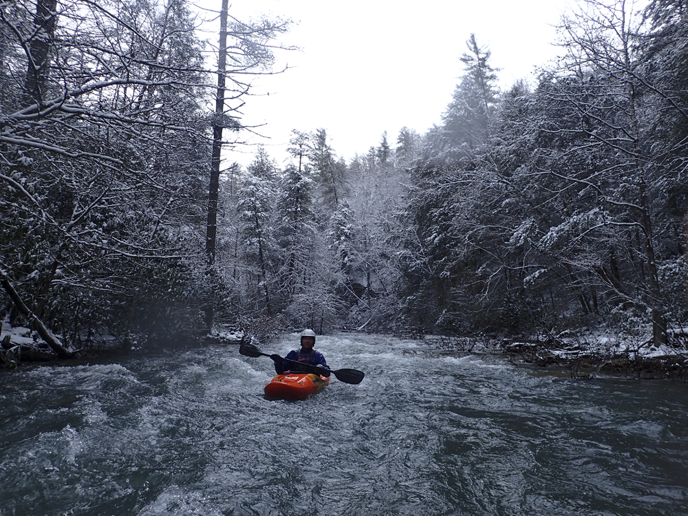 This is a nice, relatively mellow run very near Daddy's Creek on the Plateau. It requires a fair amount of water to get it going. The run is perfect for the class III boater who is looking for a nice long float that will take a good portion of the day. At 13.7 miles it is one of the longer single runs in the Plateau. For Jim and I, it took us a little over 2.5 hours of paddling downstream the whole time... but of course, going slow was not in the cards for us that day as the temperature never got over 28 degrees while we were on the water. Paddle strokes keep you warm!