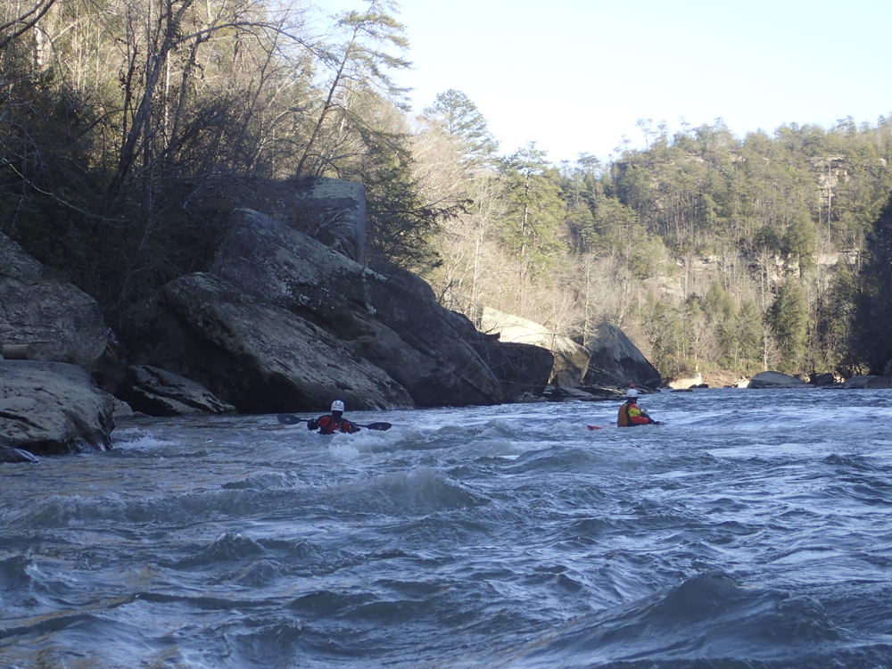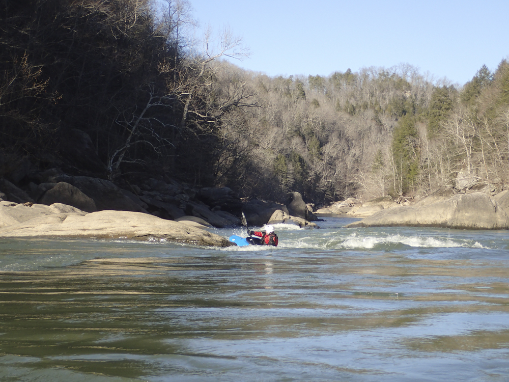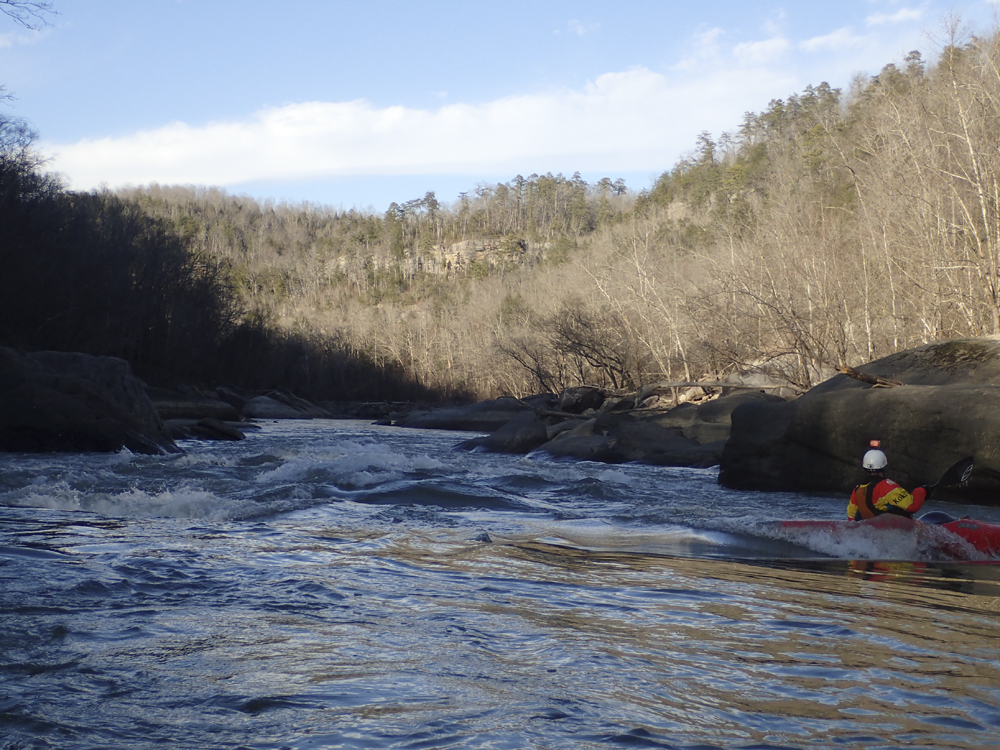 The river would be an absolutely classic class III run if it weren't for one thing. A lake paddle. And it isn't a short lake paddle either. We had a lake level of 706 ft which meant that all the major rapids were in, with the lake starting in the runout of Last Drop. We also did the hike out at Bark Camp Creek. Even with these items, the lake paddle was still a little over 2 miles. If the lake is 690 then the moving water goes all the way to Bark Camp. From the hike out location, it is actually another 2.5 miles on the lake to the boat ramp access. So your choice. 2.5 miles more of flat water, or a ~0.5 mile hike to your car? The hike seems the obvious option to me!