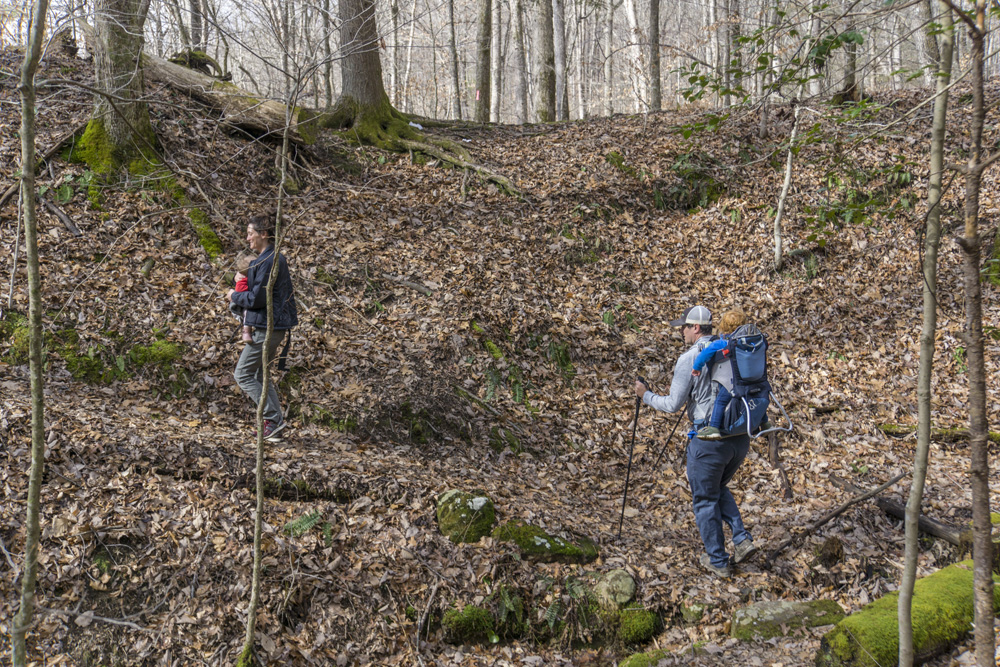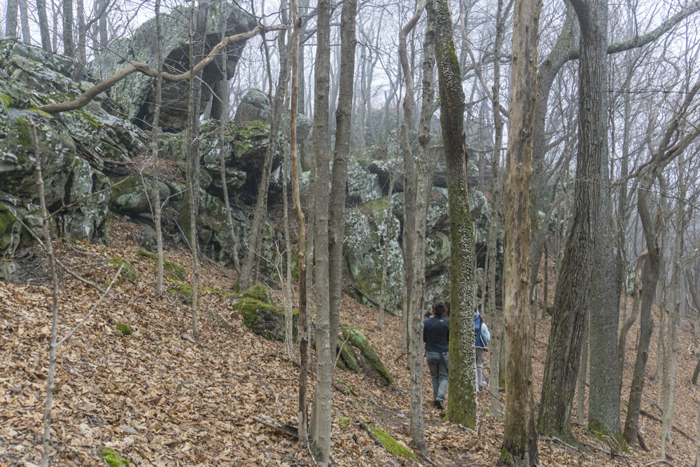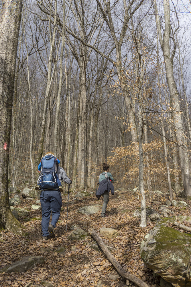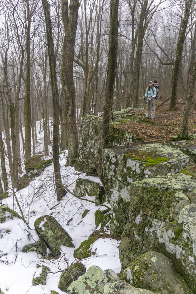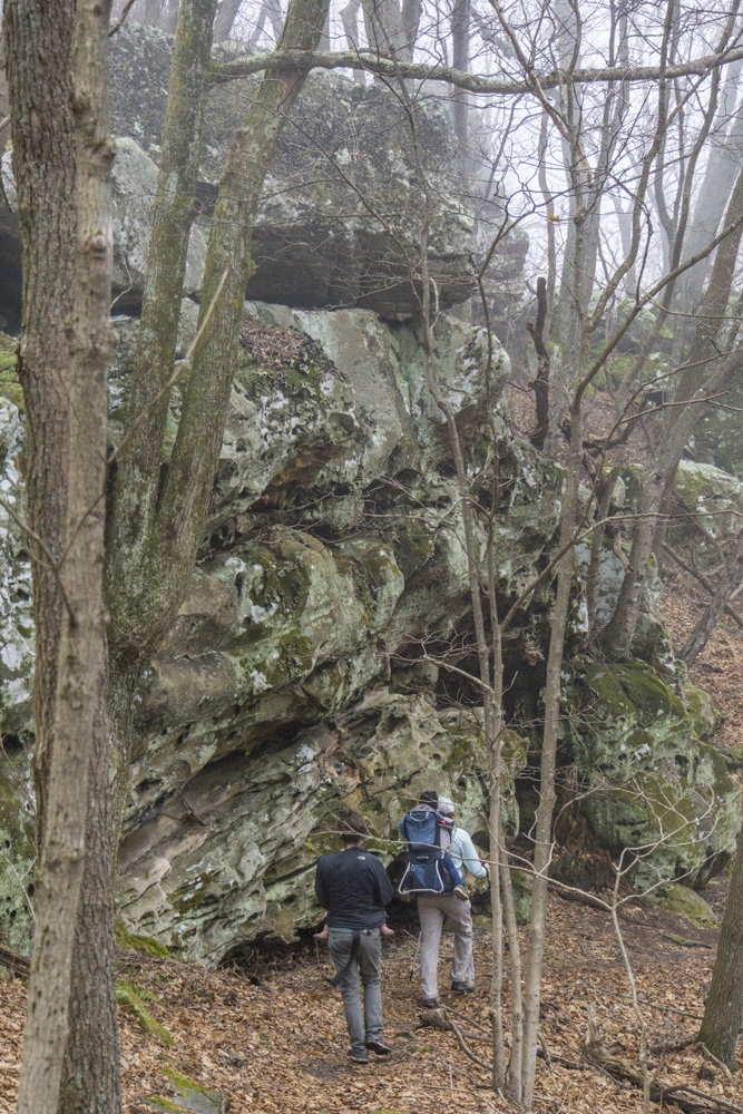 - Description: We hiked this before I had the Cumberland Trail project in my mind, so we accessed this section via the Bird Mtn Trail within Frozen Head. That climb up was the highlight of the hike, as the trail was a pleasant albeit steep hike through the woods. This entire segment of trail runs more or less along the ridge from Ross Gap to Garden Spot, so the only way to access the trail is to put some work in in climbing to the ridge line ~1,600' above the valley floor. Once on the summit, you briefly have some rock formations before you begin traversing the ridgeline on a mix between old fire roads and single track trail. The thing that disappointed me with this hike is that for all of the work to get up on the ridge line, there was no sweeping views as the trees are too thick, even in winter, to see out. Even from the summit of Bird Mountian itself, you see no valley below and no rolling hills around you.