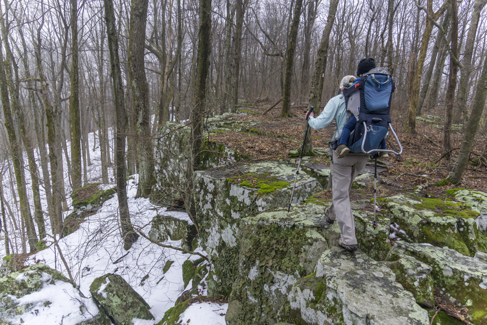 - Description: This entire segment of trail runs more or less along the ridge from Ross Gap to Garden Spot, so the only way to access the trail is to put some work in in climbing to the ridge line ~1,600' above the valley floor. We hiked from Ross Gap trailhead, steeply up to Ross Gap. Here the Cumberland Trail goes to the right deeper into Frozen Head, or left in the yet to be completed (2021) Emory Tract which has 0.7 miles completed thus far. Some add that short section to the hike. I figure once the trail is complete I will hike that section. The climb up to Ross Gap is steep. Half is on a trail and the other have is on a road (no you can't drive this, maybe with an ATV... but it is washed out at places and no car is going to make it. While it is a road hike, I should also say it isn't a terrible one. It is still pleasant and in the forest and not at all overgrown. Once at Ross Gap and you turn right onto the CT, the trail continues climbing the ridgeline passing an old mining holding pond. Our day it was frozen over which was a nice added pretty scene. On the otherside of the pond you enter a dense pine forest that quickly leads you up to the ridge line. While the view as you hike the ridge is not unobstructed, you do get pleasant views of the surronding mountains and valley down below. English Mountain comes and goes without much ado, but does mark the high point of the trail. Afterwards you begin to slowly descend and pass Mushroom rock. Then you get to some capstone rock formations which are beautiful and the highlight of the section I think. Quickly, you get to where the Bird Mountain trail climbs up. This day, we hiked down there. Another day we had hiked up this steep trail and did the Bird Mountain segment. If you want to add more rock formations to this England Mtn section, continue on the CT for another 0.25 miles to the "Rock Castle" and then choose to continue on or go down Bird Mountain via backtracting to the junction.