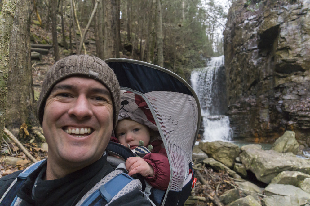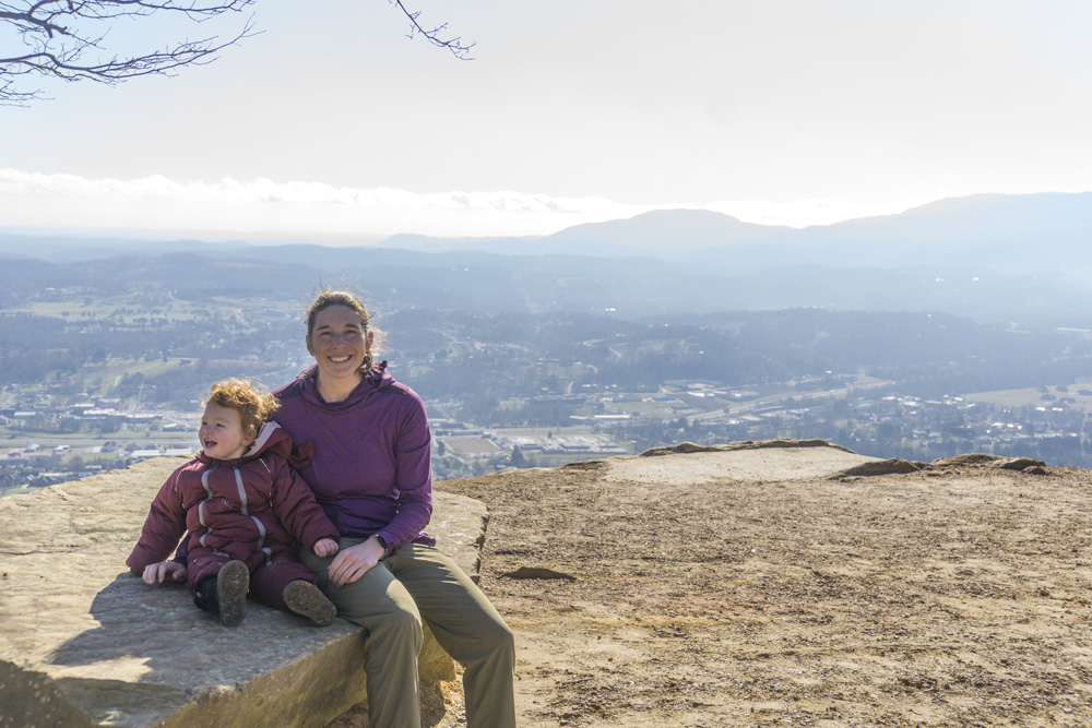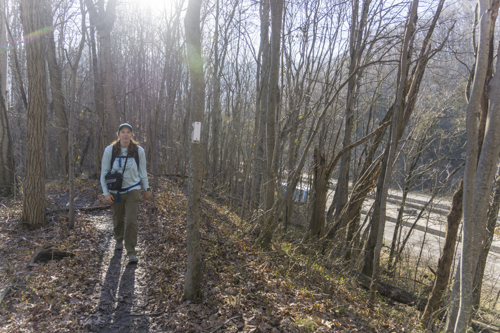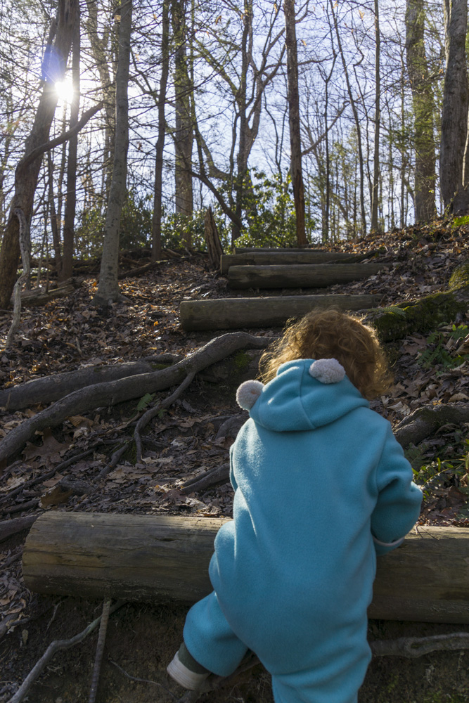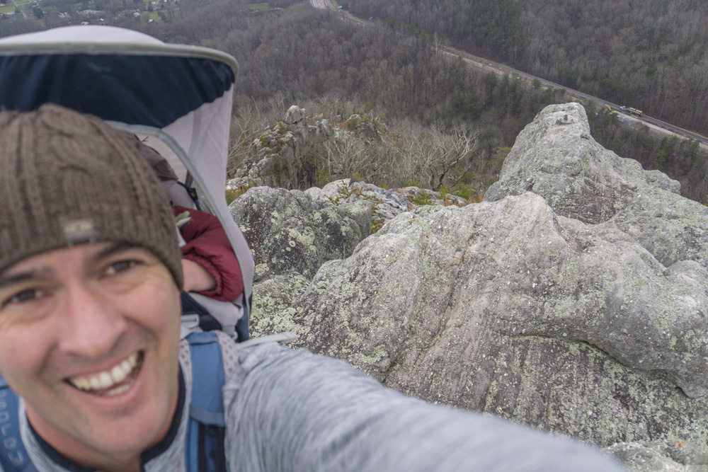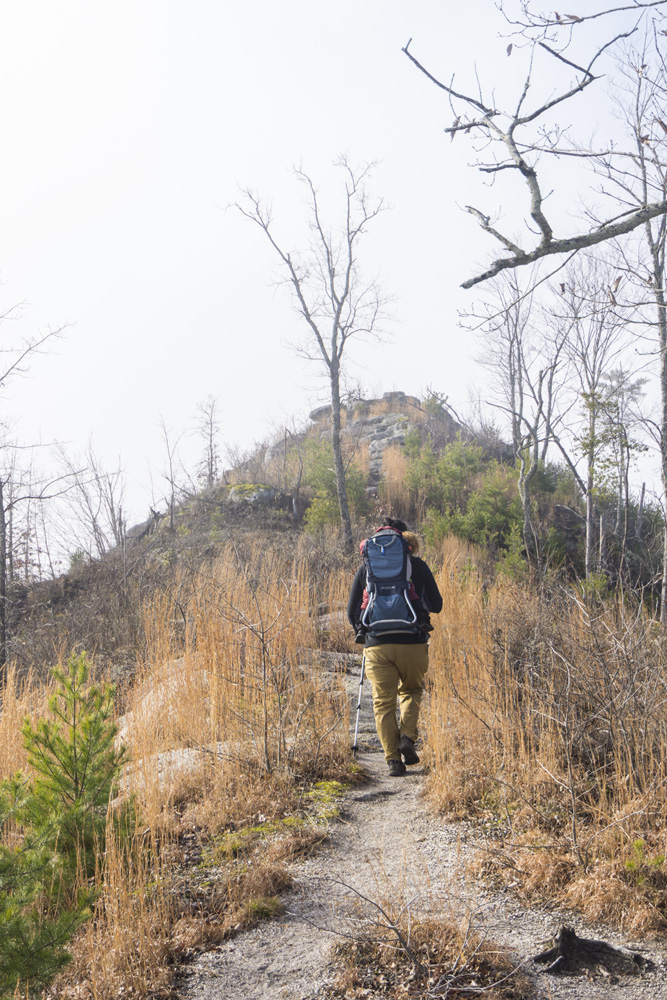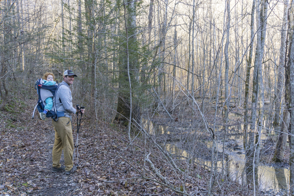 - Description: I am really torn on giving this one star versus two. The first 1.5 miles is a nice enough hike, a couple brief climbs, a ridge walk, mountain views etc. It is nice. The trail is nicely made such that Aster was able to hike the first mile which also climbed 200'. Just after the first mile the second climb is more of a typical steep Cumberland Trail affair which takes you back up to the ridge along the highway. You cross a "creek" that runs under the highway via a bridge and then quickly the hike goes south. While the highway is always noticeable, it at times is loud and is regularl able to be seen, once you cross the fence to the highway easement zone for the final quarter mile it is obnoxiously close. You literally walk between the highway and a billboard. To add to it, our day was during a freeze thaw so this part of the trail was a muddy, slippery mess. I think however, most people don't use this trail to access Devil's Racetrack. So rating it based on that last quarter mile would be unfair. Instead, I will say next time I would be more inclined to do this hike as an out and back, skipping that last quarter mile and returning via the parellel Vollunteer Loop. So, since that sounds like an appealing enough hike to me, on a nicely made trail, I am going to give this a two star hike.