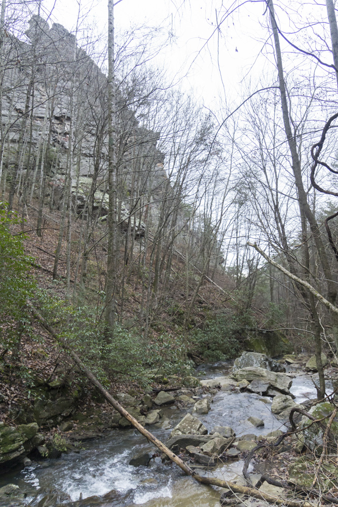 - Access: On the south side is a nice parking lot at the "Bruce Gap Trailhead" which is in Cove Lake State Park (Location: 36.30742, -84.22704) on Bruce Gap Rd. The North Side of this section is located at the Triple Falls Parking area (Location: 36.32506, -84.22468) on Shelton Hollow Rd.