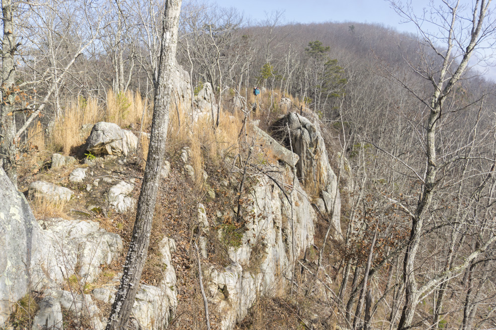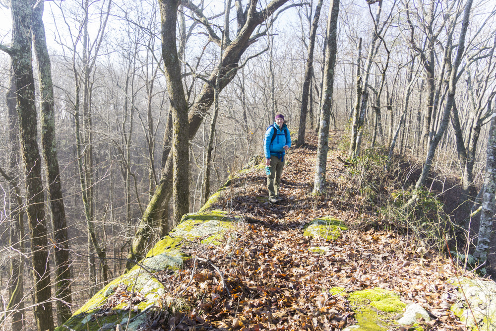 - Description: Everyone does Devil's Racetrack and apparently looks at the ridge and thinks "yea looks cool, maybe another day." From Devils Racetrack a short walk over a small null leads to the first cool section of trail where the knife edge ridge juts up prominently. After this, the hike is more of a walk in the woods until you cross the powerlines at which time more cool "rock walls" welcome you to walk along, before finishing along an old ATV trail until you arrive at the Old Kentucky Rd and Eagle Bluff.