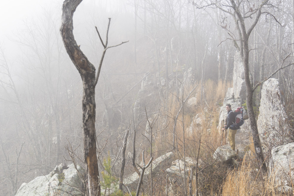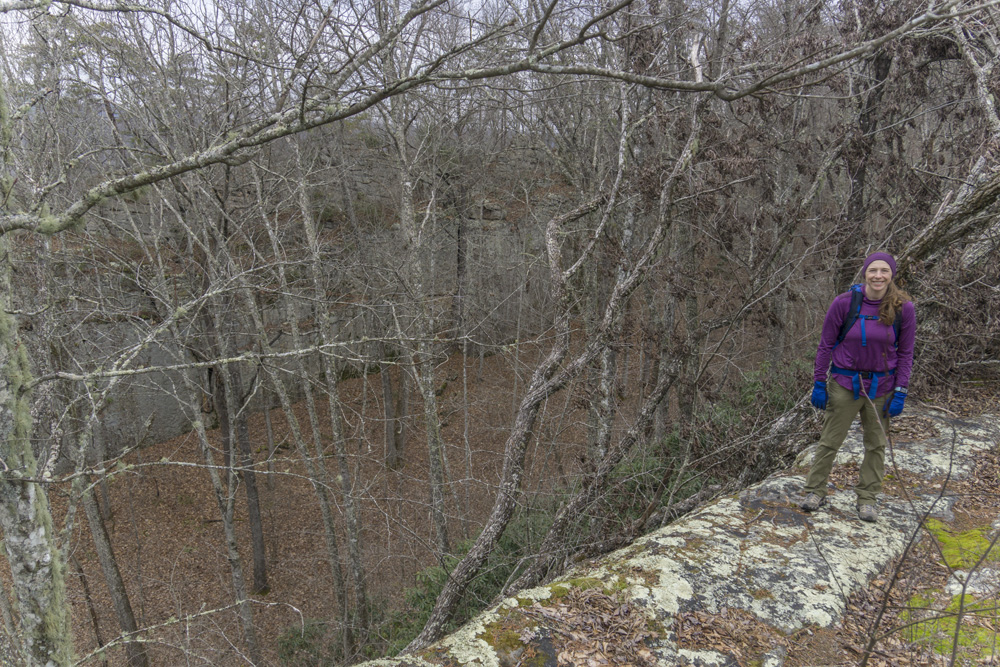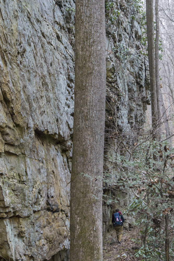- Access: Either hike up from Cove Lake or Bruce Creek, or come in from Eagle Bluff. Getting to Eagle Bluff requires a 4-wheel drive car as Old Kentucky Rd is dirt and rutted from the North, and very steep from the South. From the North, as soon as you crest the ridge you will see the trail on your right and a parking spot for one car on your left. If you pass the house, you went to far. (Location: 36.34798, -84.19727). We did this as an out and back from the Eagle Bluff side.