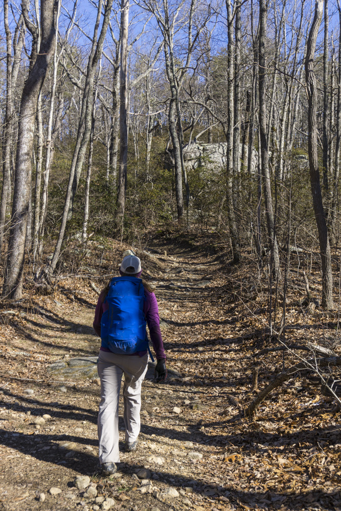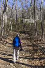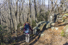 - Description: Once hiking, you follow the road for the first half mile before you start your first small climb. Thankfully, here, the noise of the highway begins to diminish. At mile 2, you have the option to take a short spur to a cave (which you are not allowed to access), its a pretty spot though. Continue and quickly hit the large climb that will fill the rest of the hike. The switch backs are moderatly graded for the most part and will take you right up to the base of the bluffs at the top of Black Mountain. While this hike is a pleasant enough stroll through the woods, it doesn't offer all that much else. The rocks and bluffs at the top of Black Mountain are spectacular though, which I why I gave the loop a 3 star rating. Note, to take the low "bottom of the bluff" route, turn right as soon as you get the wall. To head up top for the overlooks, go left into the large rocks. Look for the stairs that climb up on top of the ledge. I did find it a bit frustrating to put in the exercise in the climb and then having eveyone up there having driven to the top. I didn't even know there was a road to the top!