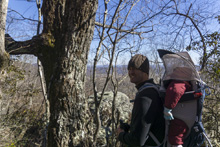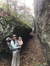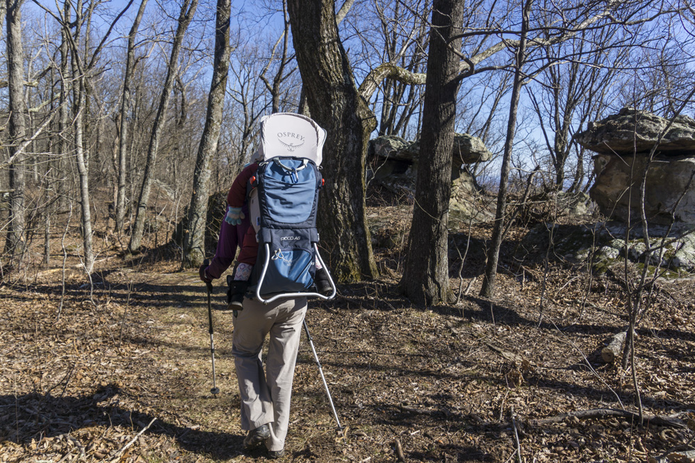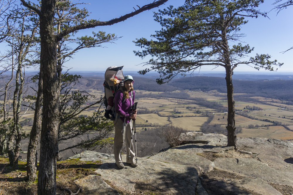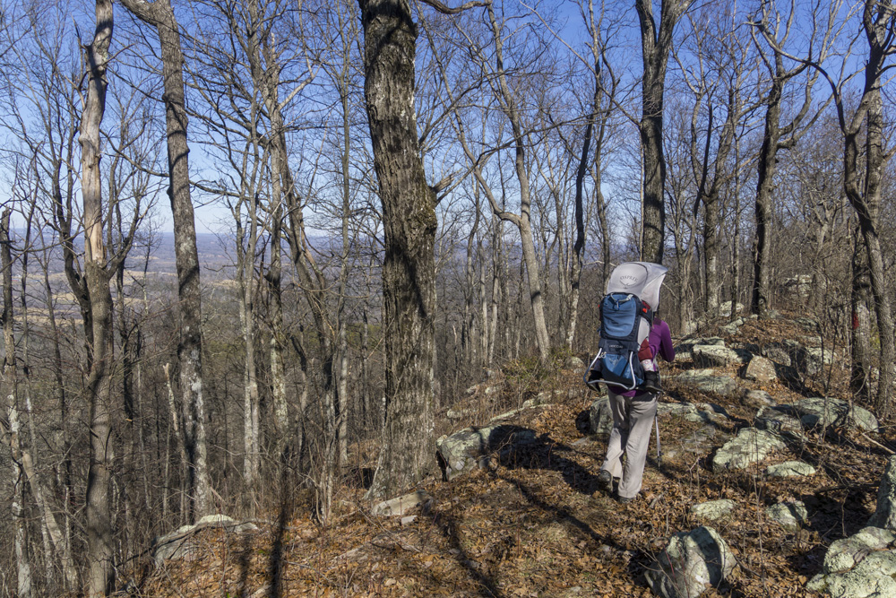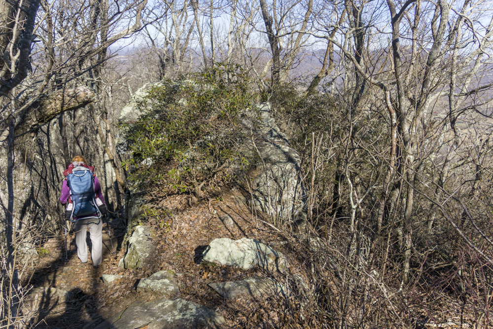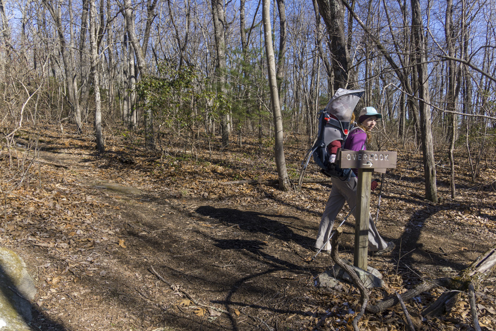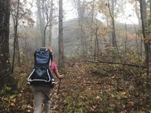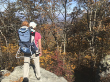 - Description: This honestly may be my least favorite section of the CT that I have done thus far. From the get go, the trail is underwhelming. The start is along a rough dirt road, and is marked by a wooden waste high "gate" that marks what would otherwise be a very misable trail that is badly overgrown and in 2021, had trees down right at the beginning, hiding the trail's presence from the road. On the trail, the first 0.8 miles has a few poorly marked spots, but just continue the errosion line, old road bed, or path of least resistance and you will stay on trail. Eventually, you crest just East of Duston Knob and get to a road clearing. Here, it is like a 4 way stop. Cross the bigger road, but do not drop down the other side, instead, look to the left for a lone faded marker and a badly overgrown trail heading left up the mountain. This turns into a road. In a short distance you will come to a fork with a blaze in the middle, stay left (who puts a blaze in the middle of the fork?). This road gets steep and eventually comes out at another road, turn left here for 100 feet before turning right and finishing the climb up to the ridge line. Honestly, the trace saved us throughout this part. Once on the ridge, it is all much much easier as the next several miles are all on the ridgeline road. The overgrown nature, plentiful roads, poorly marked indicators, and lack of interesting scenery is why I rate this trail so badly. But, do note at mile 1.9 you will come to your first interesting rock formations and there is a spur here to Donnely Overlook. We did not visit this one but at least the rockyness brought something to the hike. Just before mile 4 we noticed some cairns and saw a small spur trail which we did do which was Lost Overlook. With the baby carrier we were unable to drop down and climb out onto the rock precipice that would have offered the best viewpoint. Soon, the trail turns to single track and becomes more of a 2 star trail. Some nice rocks, nice ridgelines, and unstructed but wide-ranging views are allotted on both sides of the ridge. At mile 5.8 you will get to an overlook sign, do not skip this one as this is the main overlook and is very nice!