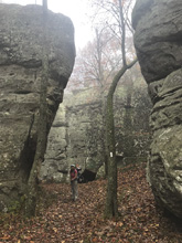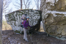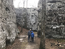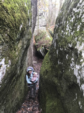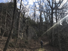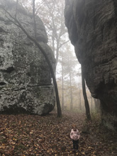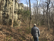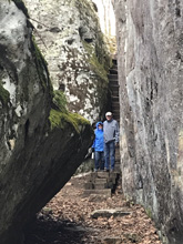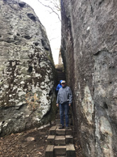 - Description: This is a short option to make a loop out of but is separate from the main "crest loop" but in my mind, the southern part of the crest loop and this make a far superior loop than doing the north section of the crest loop. To access the trail, from the parking area go down the paved path to the junction where the kiosk is. Going straight past the kiosk on the double wide trail takes you on this trail. From the other end, after you descend the stairs on, turn left through the hallway of massive rocks, and head away from the cliffline for 100-150 yards to the trail on the left that is only flagged (2021) but is well established. The trail is a wonderful walk through a rock garden of massive rocks. There is very little climbing either way to hike it, but combined with the South section of the crest loop and the overlook that section provides, it is a absolutely delightful short hike that totals in at 1.5 miles. In the middle of this short section the trail kinda appears to have a few forks, just stay "low" (AKA, away from the cliff line) to stay on the main trail.