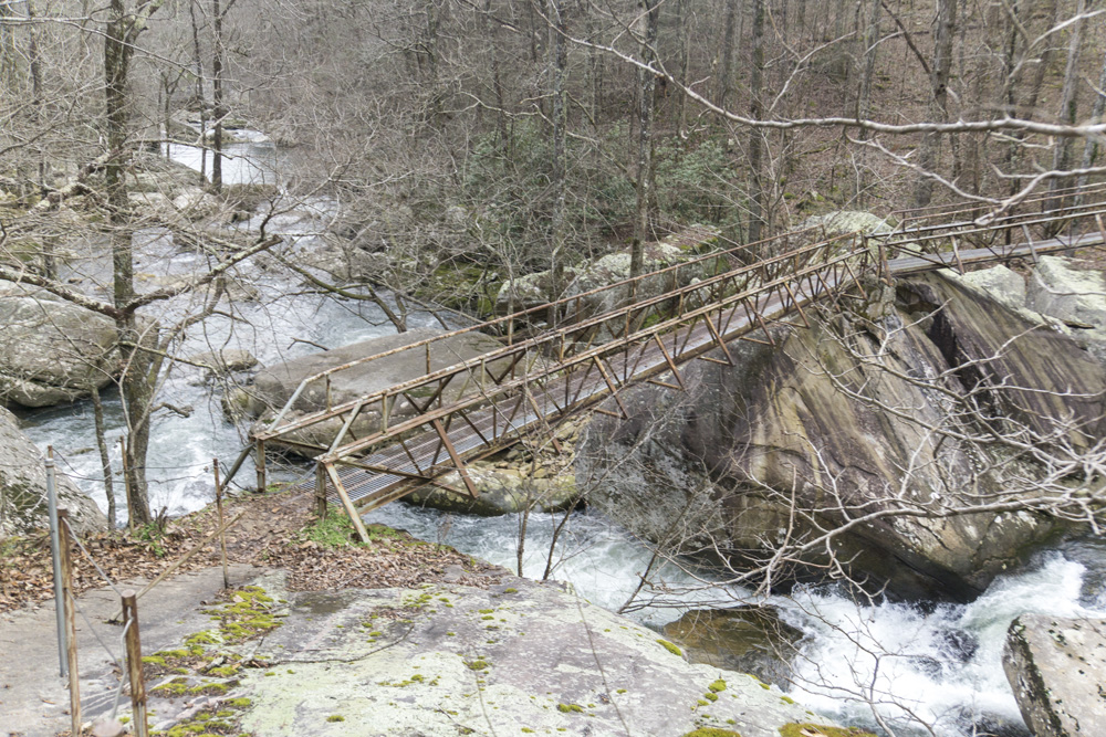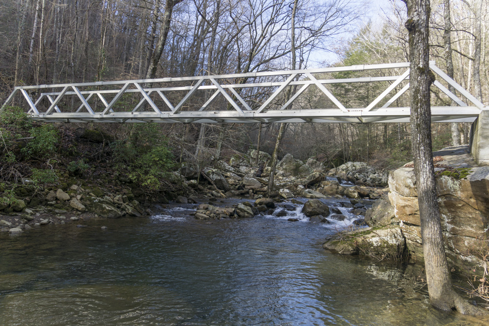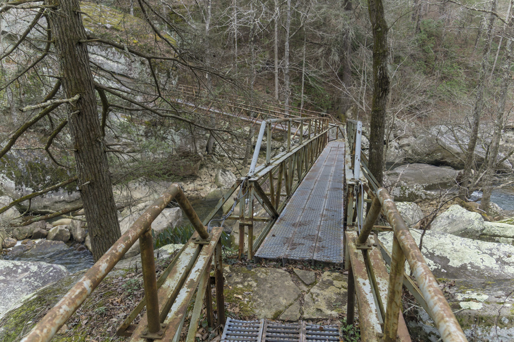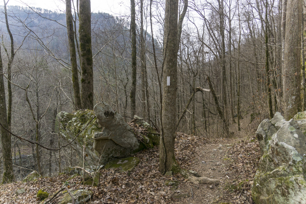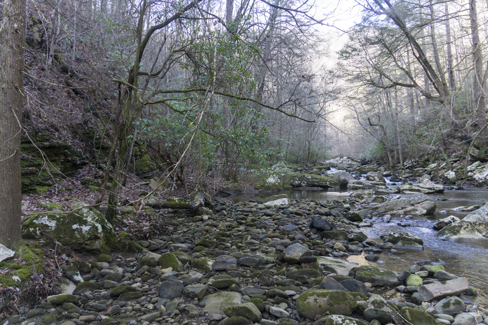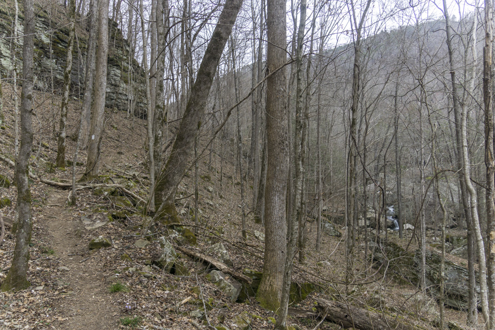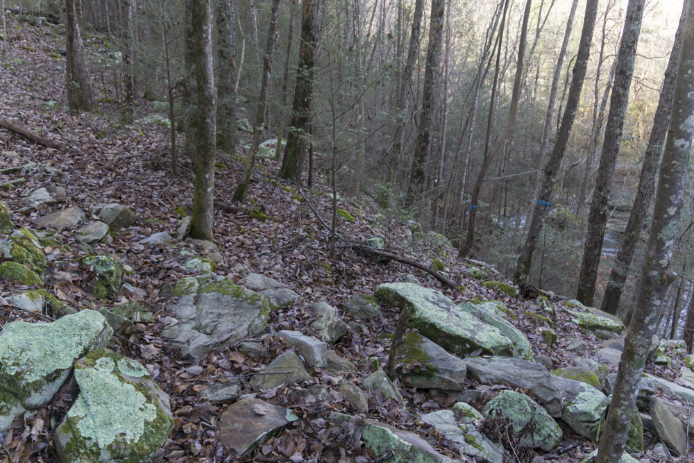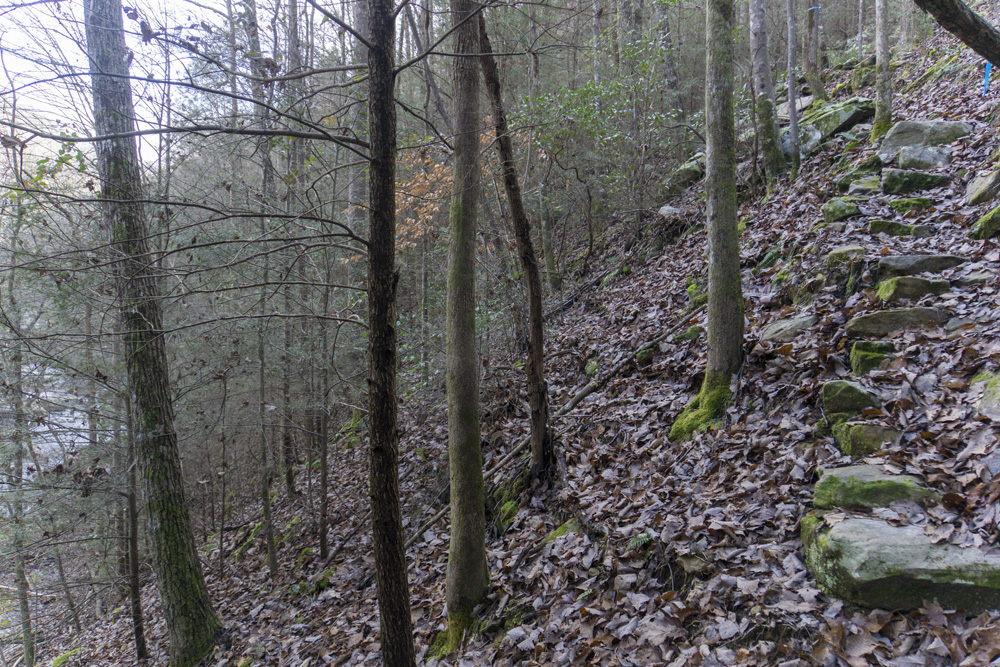 - Access: The Roaring Creek trailhead is a nice large parking area (Location: 35.45935, -85.10507). To access the trail, depart from the back of the parking lot and pass through the gate. Stay heading up river level, do not turn left toward the McGill Creek section of trail. I have yet to access the Gillbreath/Dogwood parking so I can't speak to it (Location: 35.49608, -85.08573) but I did see the blue marked trail coming down the left side of the creek directly to the bridge and I believe it to be a quarter mile connector, steep going up it if you are ending here.