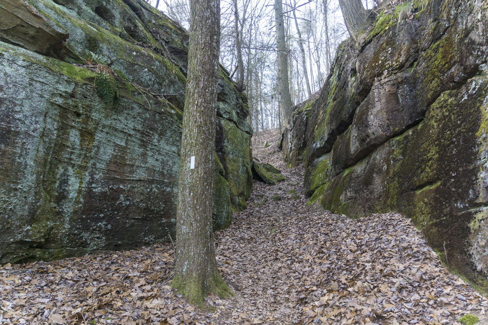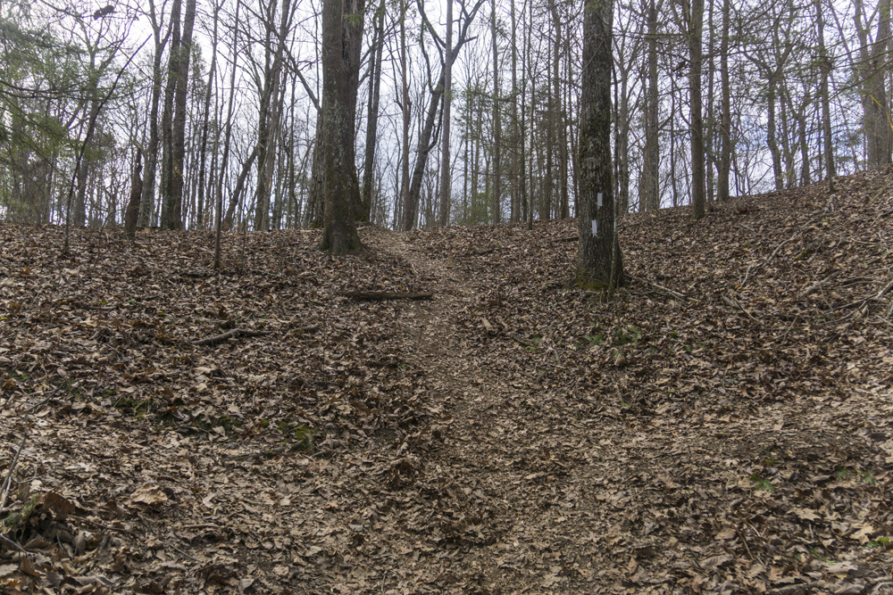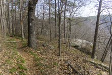 - Access: A nice large parking area (Location: 35.45935, -85.10507). To access the McGill side, walk out the back of the parking area on the old railgrade beyond the gate. Within 100 ft, look for the trail departing on the left. Its goes back out to the road just before the bridge, you road walk the bridge, and immediatly turn right back onto the trail. Note, there is also room for one car where the trail crosses Brayton Mountain Rd (Location: 35.4486, -85.10749). I am sure this is frowned upon, but it would save you a mile if you required. And would only miss out on one brief section of worthwhile trail in the first quarter mile of trail from road at the start.