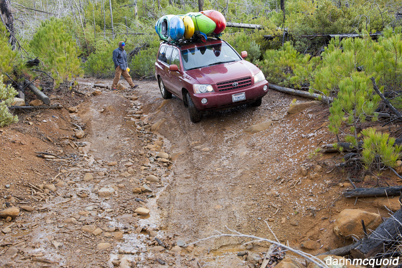 Diamond Creek has been on my mind since the first time I boated by the confluence of the creek with the North Smith some 6 years ago. Since then, I have made several trips to the Smith River area hoping to get on this creek, but due to weather either not showing up or showing up too much, I was never able to make it. The challenge is that you need some rain to come in to bring the creek in. However, the dirt road that takes you to put-in goes near 3,000 feet and is as such under snow most of the times that the creek has water. Furthermore, it is run so rarely that the road may have significant trees across the road in addition to being plane and simply a very crappy dirt road. Although my Highlander made it, I would not subject my car to that road ever again... I am sure I reduced my car's value that day. Next time, I will recruit someone with a pickup with proper clearance... or a 4Runner or something.