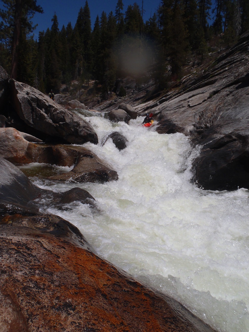 It turned out, the flow was adequate for the main granite gorges, however it was in fact very low for the in between. Many sections were shallow rapids where hitting rocks was unavoidable. However, the amazing scenery in the granite walled gorges and the fun rapids in those gorges certainly helped to make the day worthwhile. In total, I imagine that with proper flow, this run has to be one of the best class IV-IV+ runs around thanks to the scenery. Hopefully, I will find myself there again at some point in the future... this time with more water than the 190/250 cfs diurnal that we had at the Dinkey Creek Gauge.
