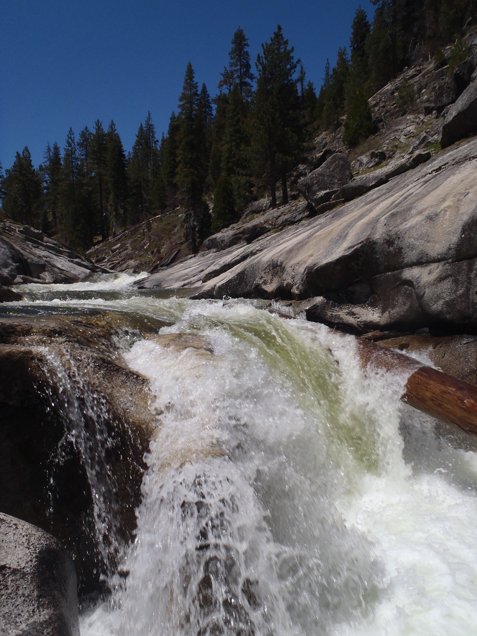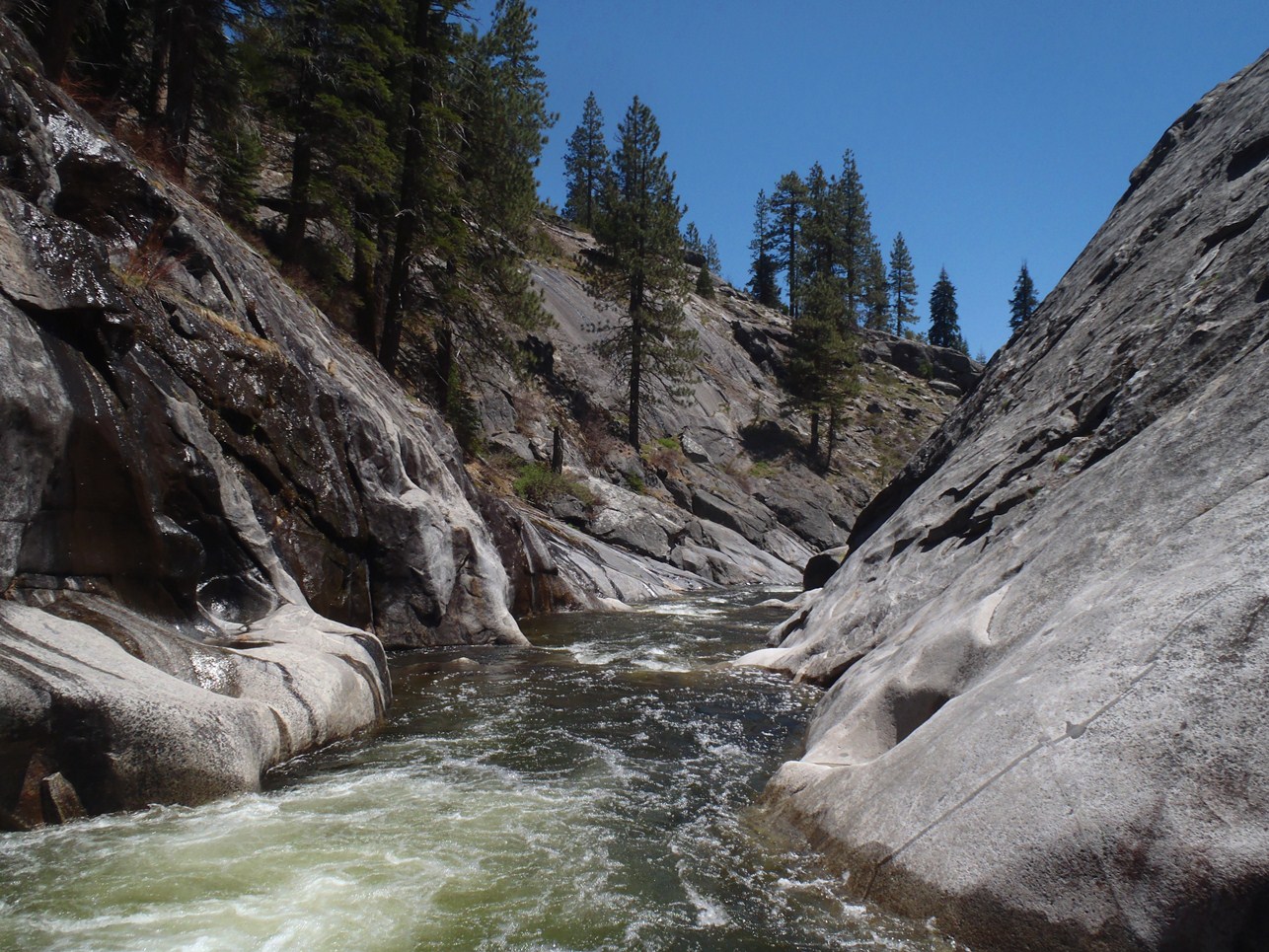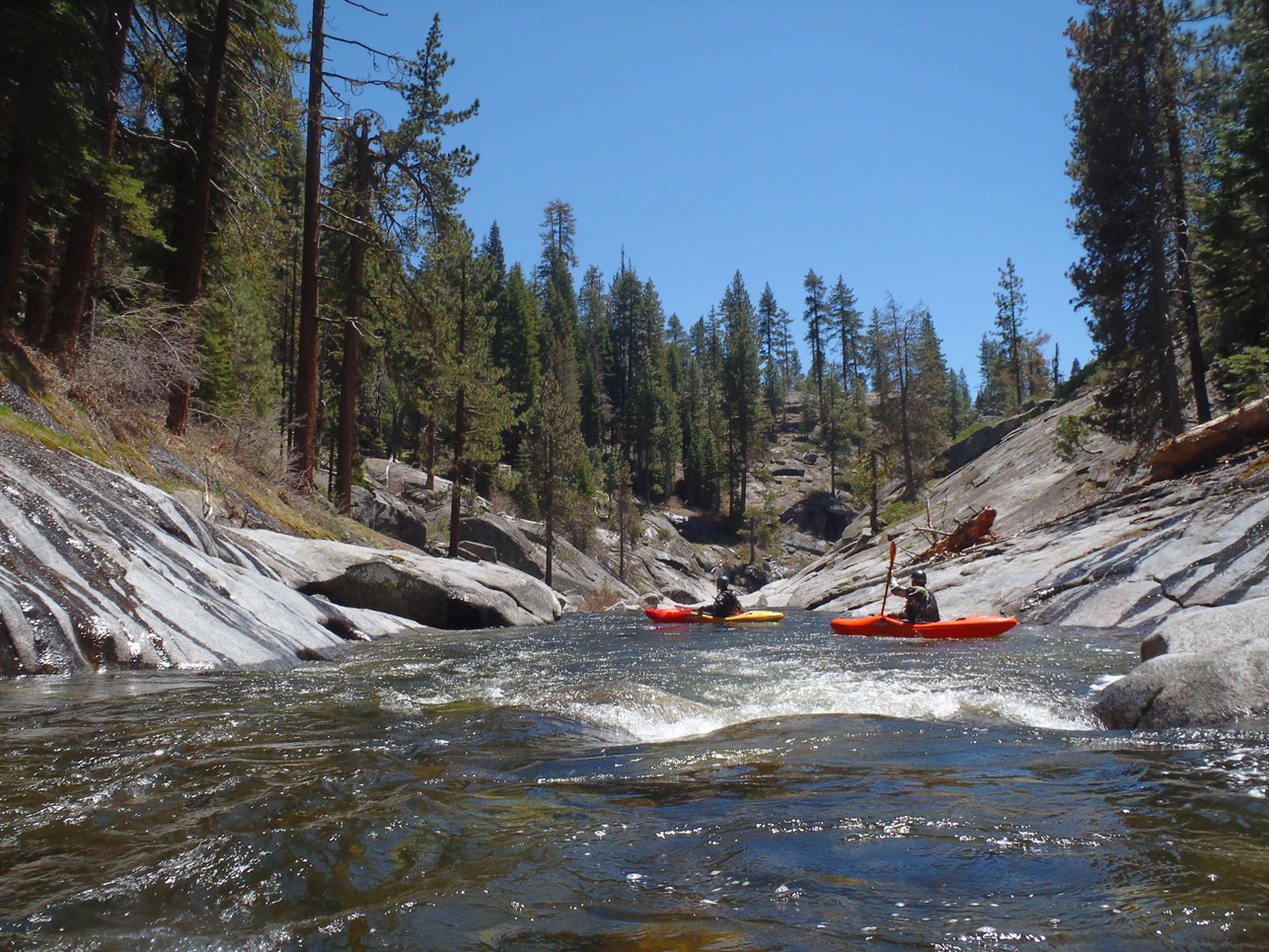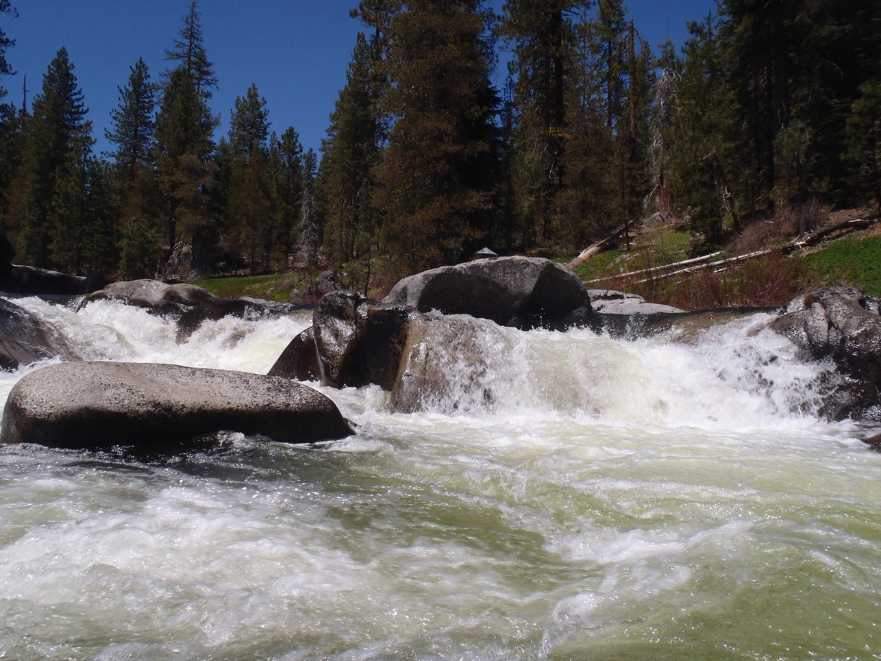 Put-in: Head back to Dinkey Creek Road. Continue for another mile to the lower bridge over the Creek, or cross and turn left on Old McKinley Grove Rd and continue up another half mile to the upper bridge. Or continue up Dinkey Creek Road through the campground (if open) and put-in at the top of Honeymoon Pool Gorge for an added section of whitewater.