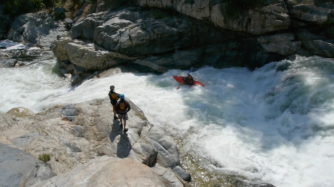 Tiny Chute (IV to IV+). The one bed rock drop of the run. There is the hero line in the center that should only be run at flows of ~450 or below. It is a 6 foot boof to downtime. Then roll up and paddle away. The far left line offers a friendly and easier alternative as it is a small slide to boof.