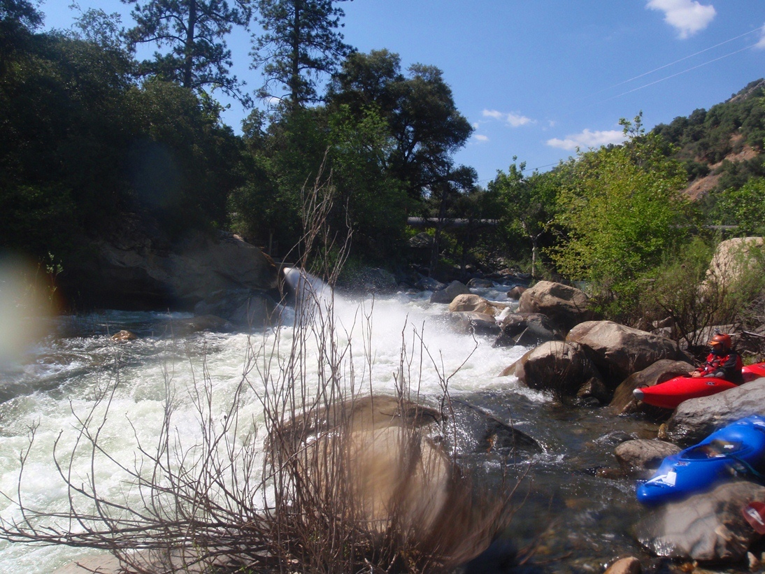 The rapid just above the put-in is commonly portaged by folks when the water is up, several large holes are present to give you a ride so look at it before you decide to hike up to the top of it to run it. At lower flows, the pictures I have seen make the rapid look much friendlier. However, if the water were lower, I think this run would get really manky. As it were, I thought it was a big on the manky side. The rapids are all boulder gardens in a wide creek bed with only one exception of bedrock . It is because of this I think if you caught it with some juice, that it would be a fun class IV+ continuous boulder garden affair (let me know if someone finds out otherwise).