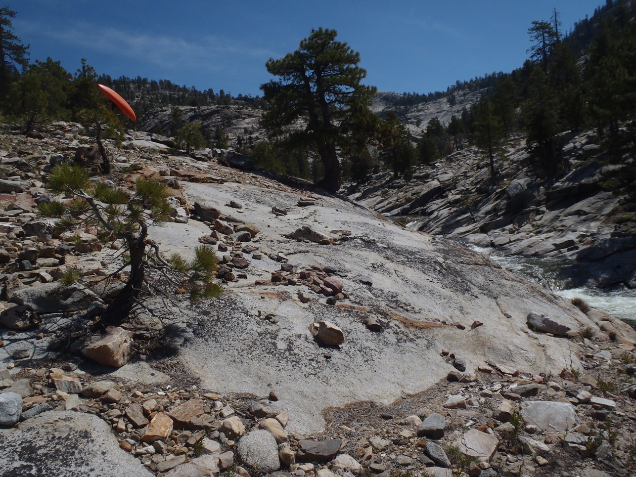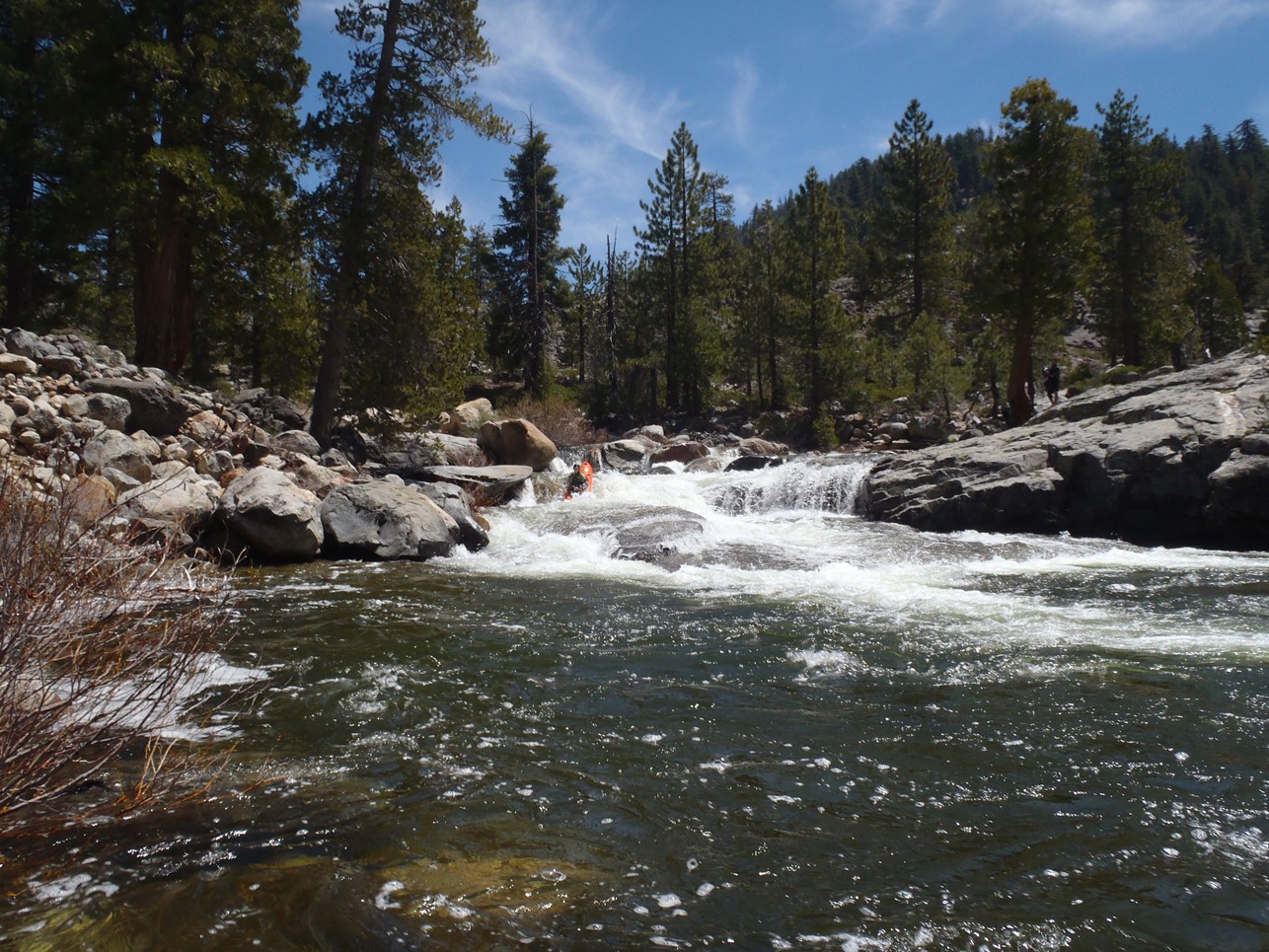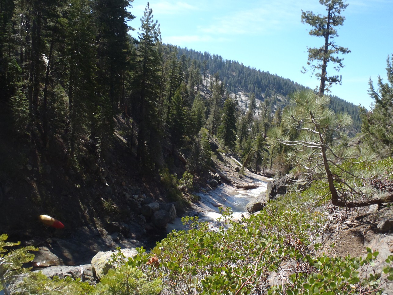 Put-in: Go back to Dinkey Creek Rd and go back towards Shaver Lake for 2.7 miles. Turning right on the nicely paved road marked 9S09. Follow for 5.2 miles to the dirt road leading down to the old quarry that can be seen from the road. Then start hiking... follow the ridge for a little bit and drop down to Cow Creek and cross it. Move downriver and head up and over the saddle when it becomes somewhat obvious... this will drop you at the base of the slide.