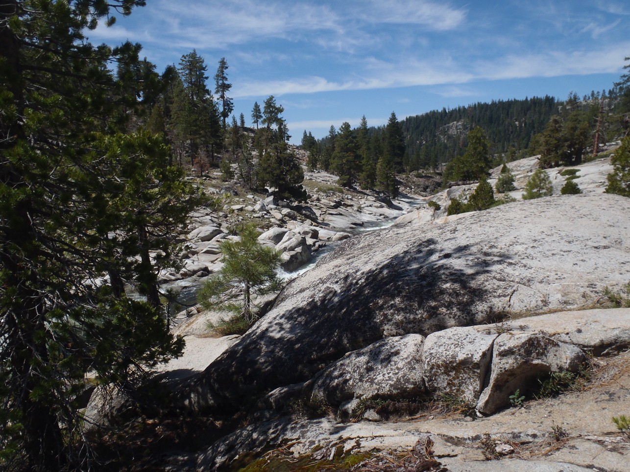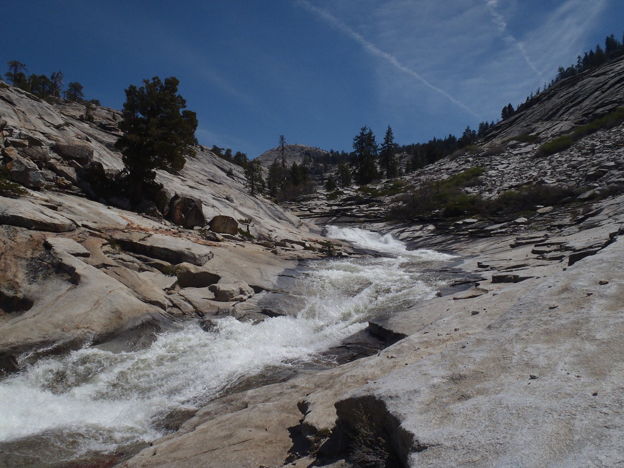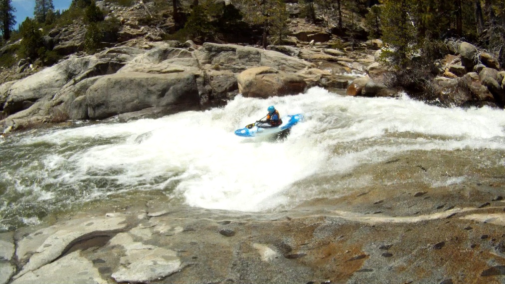 Put-in: Go back to Dinkey Creek Rd and go back towards Shaver Lake for 2.7 miles. Turning right on the nicely paved road marked 9S09. Follow for 5.2 miles to the dirt road leading down to the old quarry that can be seen from the road. Then start hiking... follow the ridge for a little bit and drop down to Cow Creek and cross it. Move downriver and head up and over the saddle when it becomes somewhat obvious... this will drop you at the base of the slide.