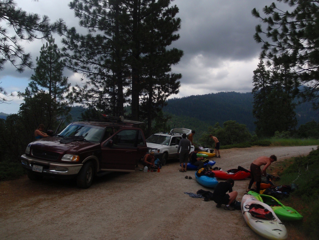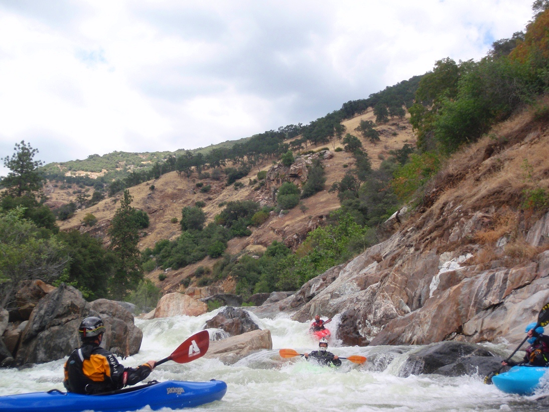 Take-out: From Fresno, take Highway 180 East towards King Canyon. Take it through town eventually heading north one block on either Del Rey Ave or North Academy Ave (after 13.5 miles) and turn right on East Belmont. After 6 miles this changes names to Trimmer Springs rd. Follow Trimmer springs around the lake until it begins going up the Kings River itself. Cross the river and go left 3.2 miles up to Balch Camp.