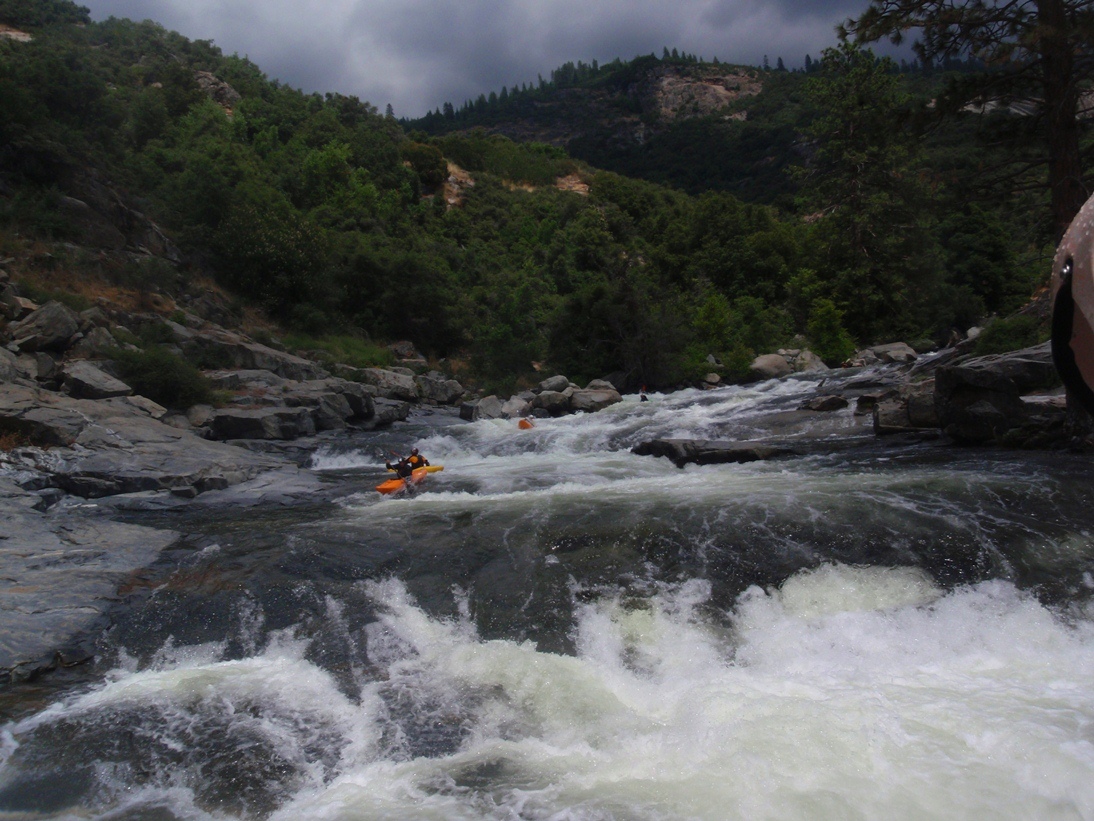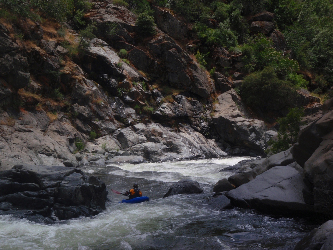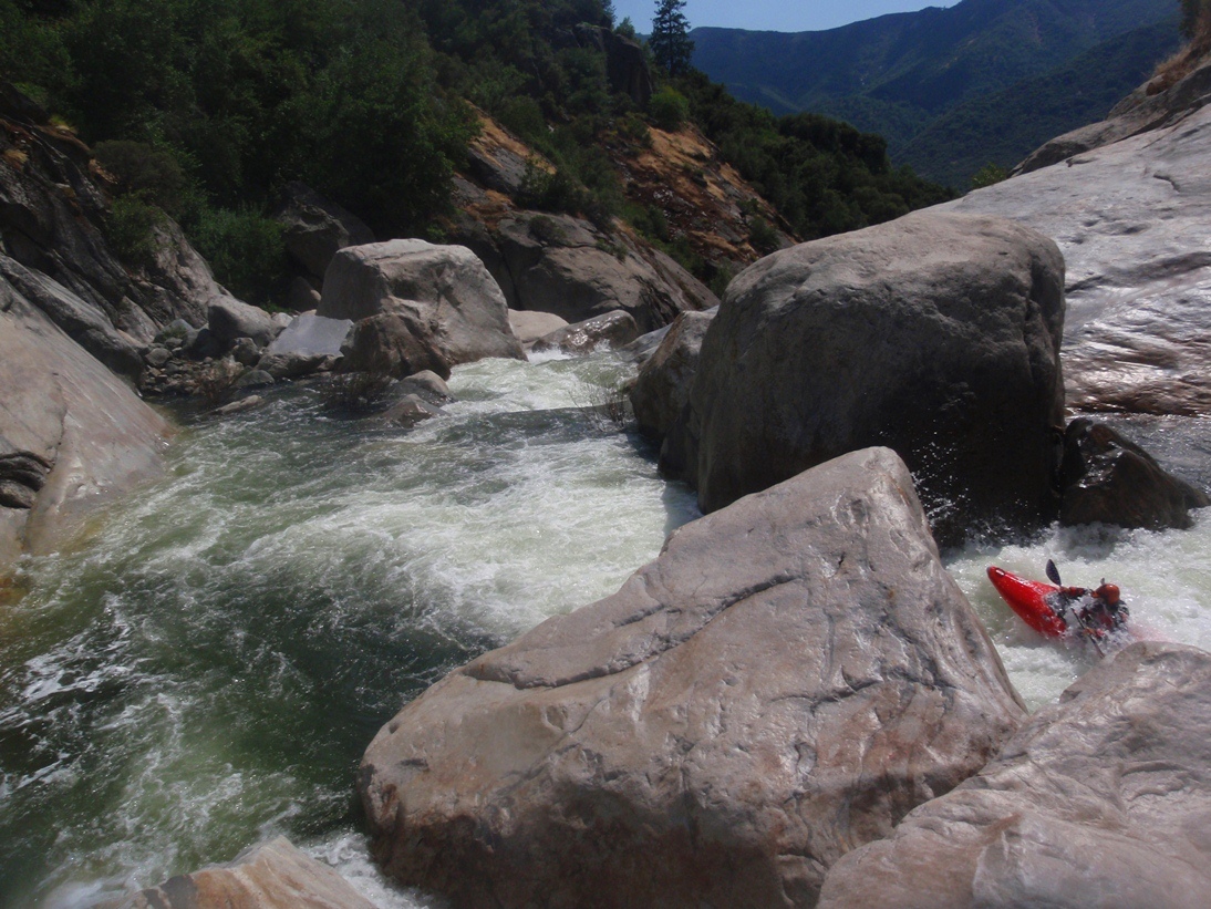 Boogie (IV to V). Below here the river is more boogie. One or two more bedrock drops are followed by a section of Boulder Gardens. When you come to a boulder garden that has a 10 foot boof in the entrance, eddy out left to scout and take pictures.