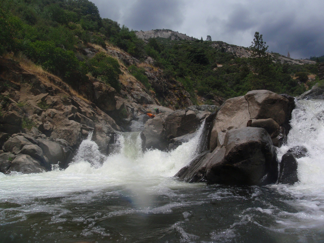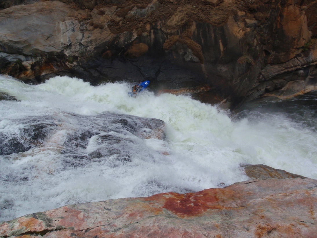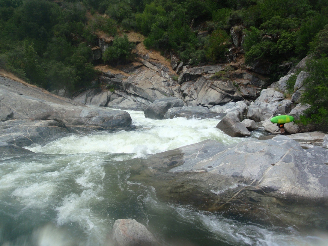 Pre-Portage (IV+). OK, so it is really only a class IVish sort of move, but there is a hole with a wall backing it up that tail stood half of our group and back-endered me. Oh, and you are 25 feet above the entry of the mandatory portage. Scout left, possible to seal launch in on the left around the move but you will likely piton from 6 feet up...