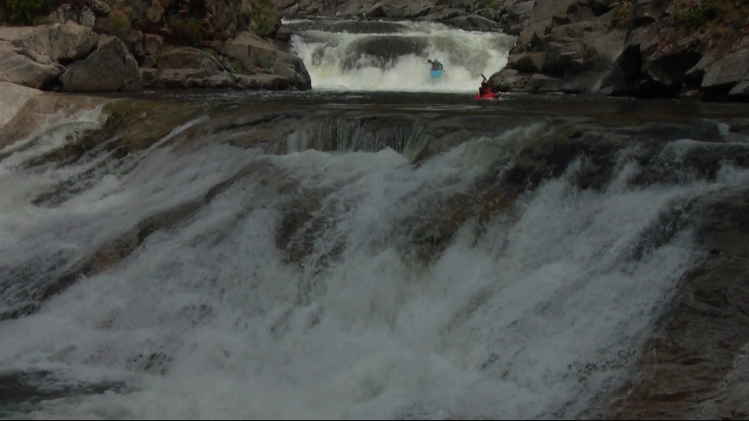 Below here the river gets easier, and enters some slides, and boulder gardens before arriving at a sweet set of falls.
