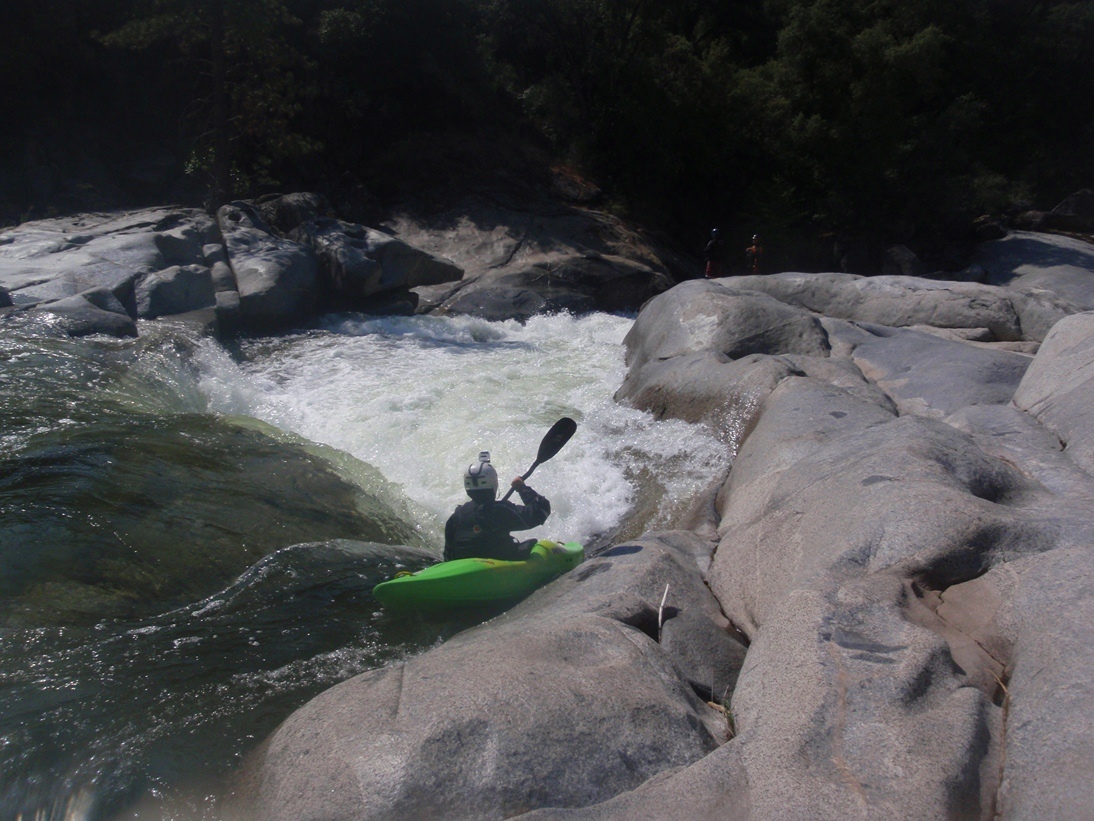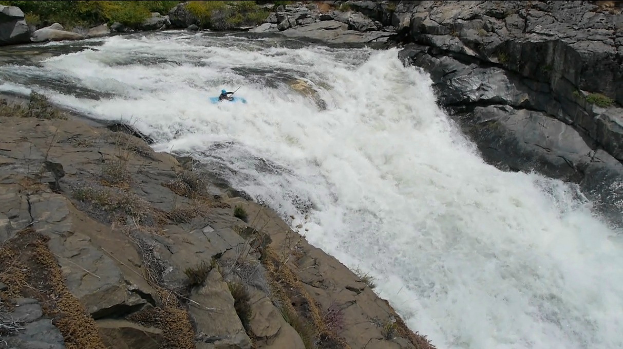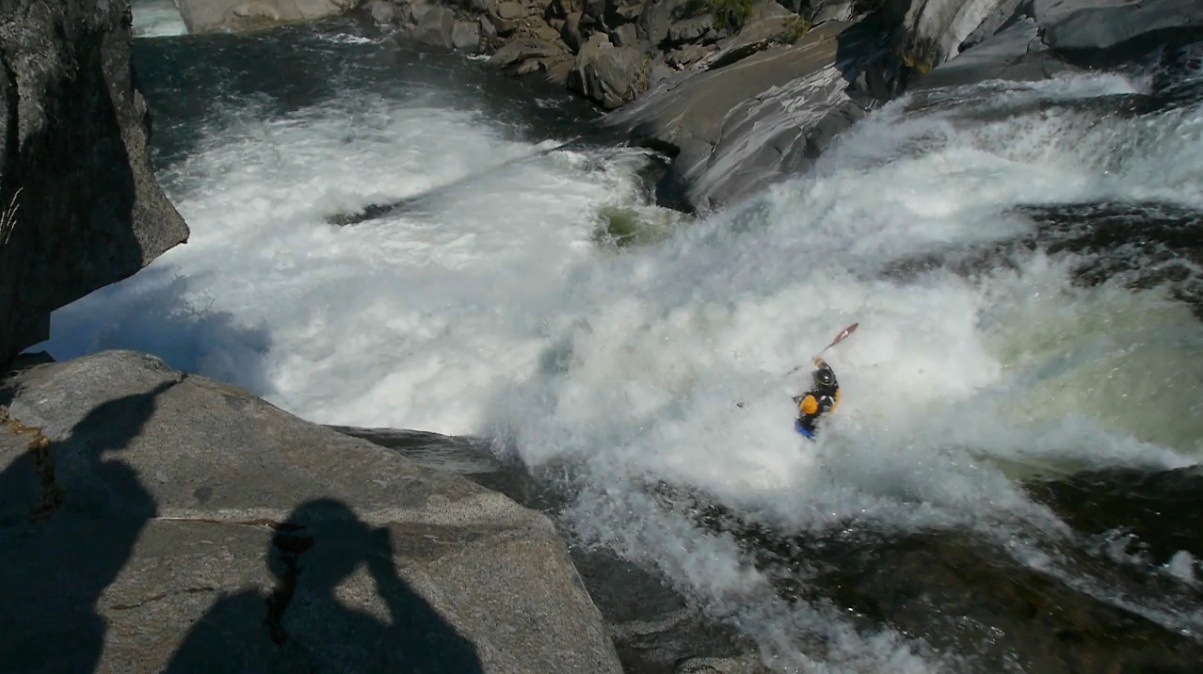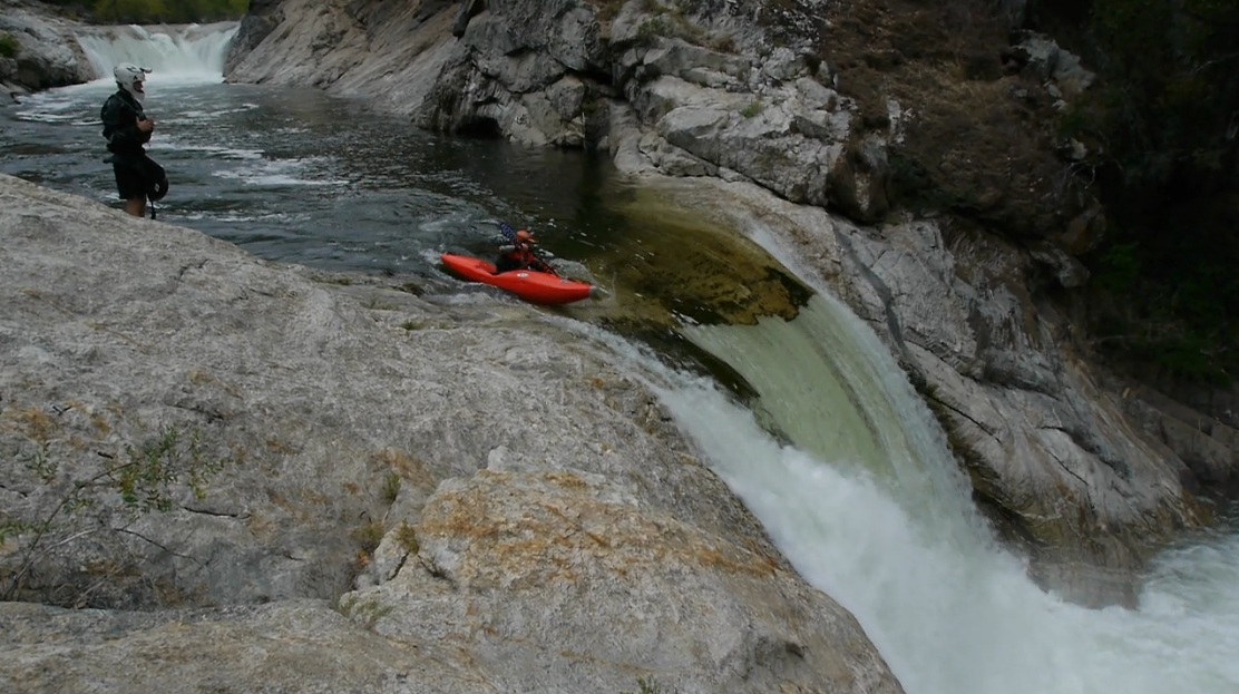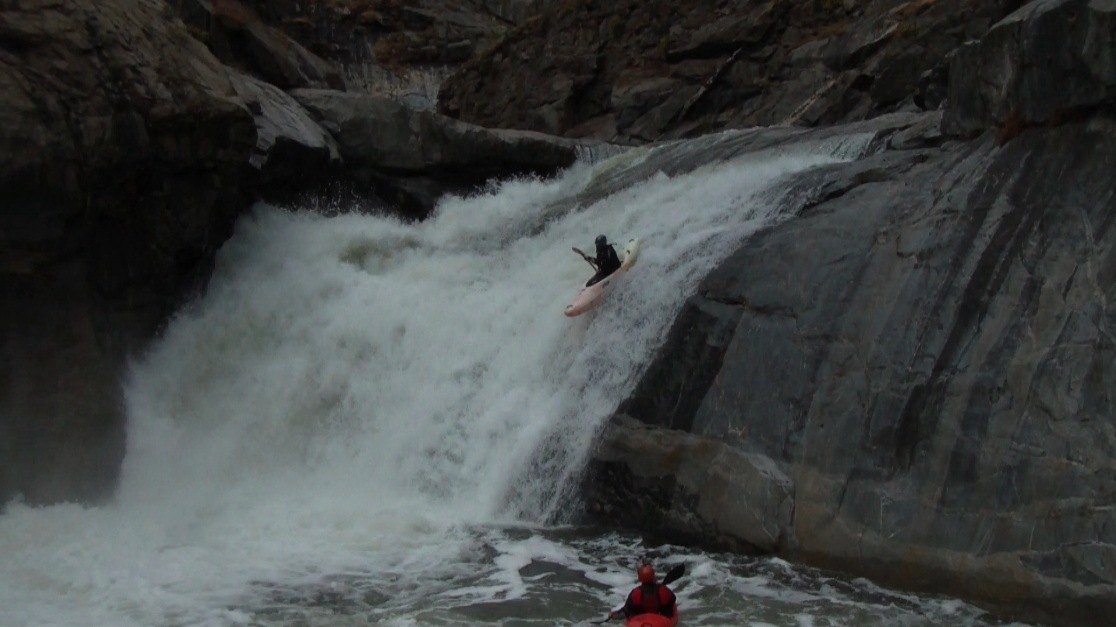 Double Drop (V). A super steep double drop is the last stout bedrock drop on the run. The entry is best run far left of center, regardless you will melt into a seam and whiteout. Roll up and drop the exit ledge. You will plug in and likely come out upside down, but apparently everyone always comes out. It took Darin until this, his 8th trip to come out upright and then I went next and stole his thunder... luck. But dang you go deep! If it weren't so much fun it would be terrifying!