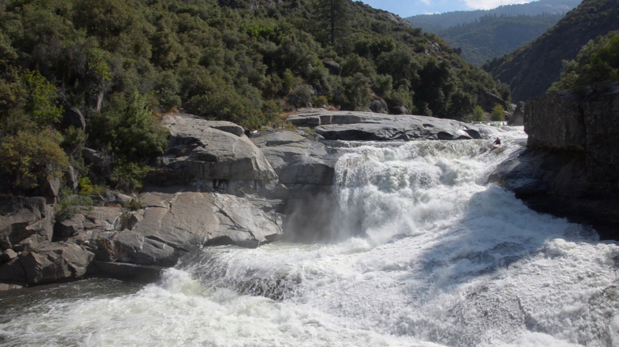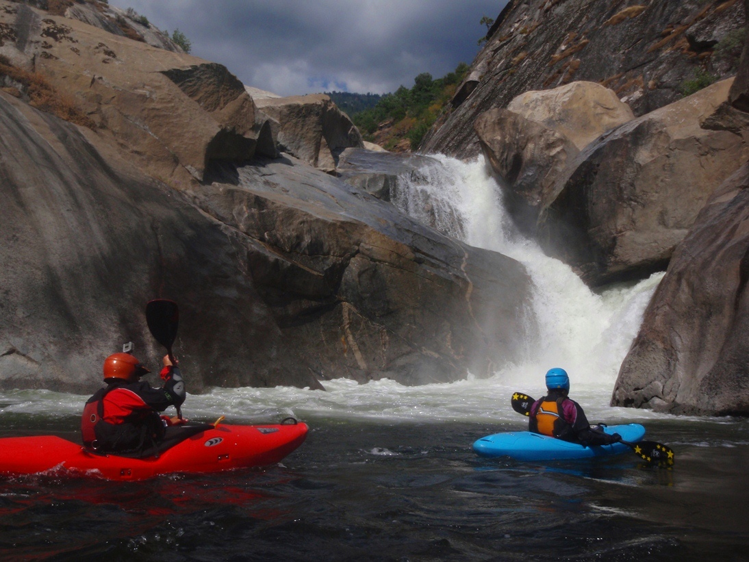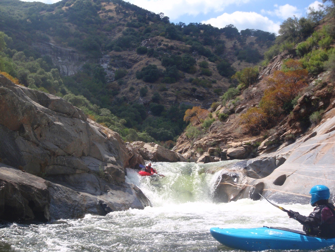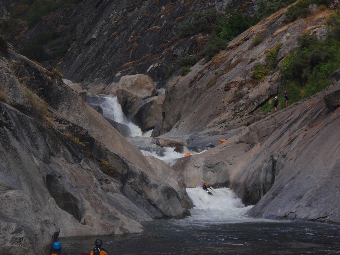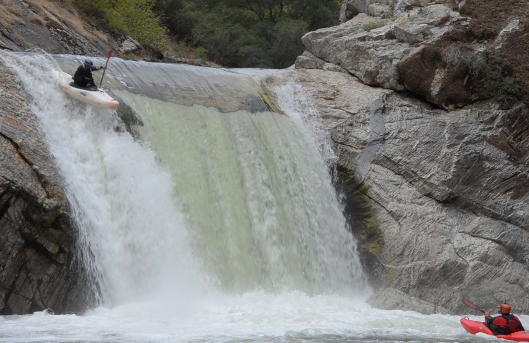 Double Drop (V). A super steep double drop is the last stout bedrock drop on the run. The entry is best run far left of center, regardless you will melt into a seam and whiteout. Roll up and drop the exit ledge. You will plug in and likely come out upside down, but apparently everyone always comes out. It took Darin until this, his 8th trip to come out upright and then I went next and stole his thunder... luck. But dang you go deep! If it weren't so much fun it would be terrifying!