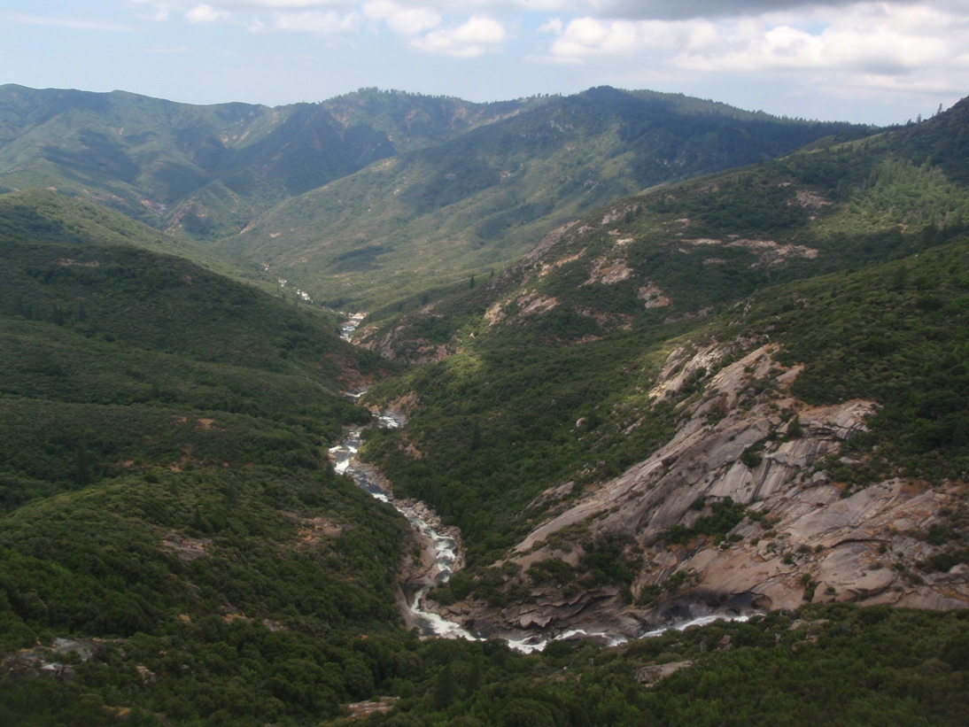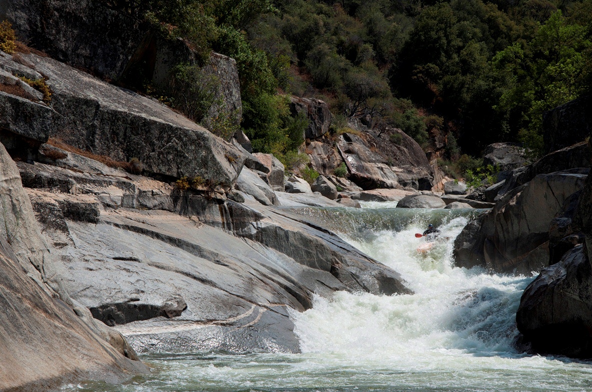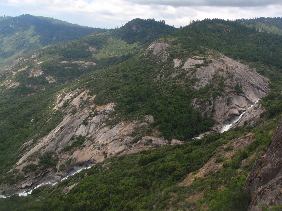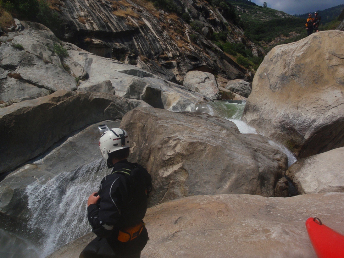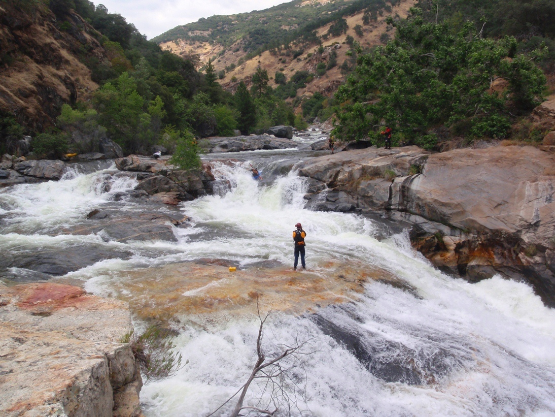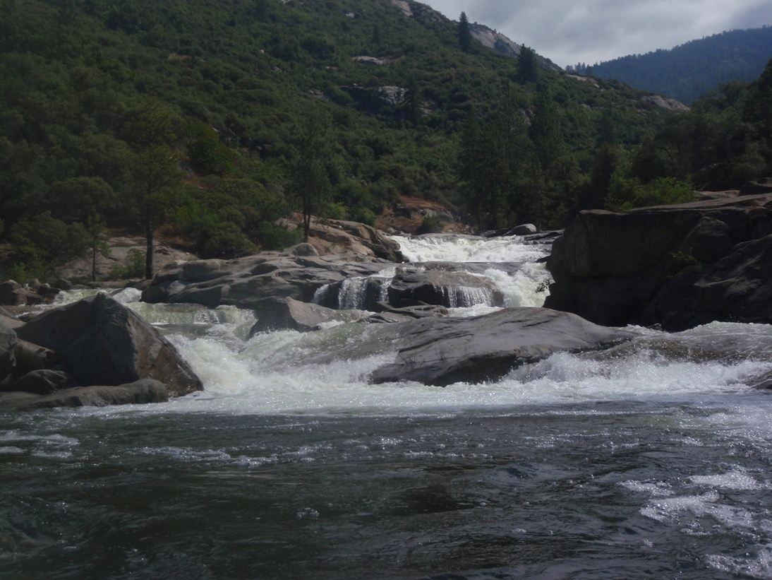 Put-in: Drive Back towards Fresno 10.6 miles on Trimmer Springs Rd. Just after the bridge over Big Creek, turn right on Big Creek Rd. In 4.8 miles stay right and cross the creek. Climb 7.7 miles, passing under the power lines. At the crest of the hill, make a left onto Ross Crossing. In 8.4 miles turn right at the 4-way intersection. In 4.4 miles turn right back onto Ross Crossing. In 2.2 miles you will cross over Dinkey Creek, continue another 1.9 miles climbing away from the river. Park just before a left hand bend. If you reach the Ross Creek, go back a short ways. The trailhead is hard to spot and is more just a trail that drops down quickly away from the river. It is however well groomed at the start as of 2011 so it should be easy to recognize that you have found it once you have actually found it (if that makes sense). After some bushwhacking, you will come to a granite slab, go down the slab to the creek below. Cross the creek and begin climbing the remnants of a forest service trail. After 100-200 yards drop down to the right on the steep not quite trail. This will drop you down to the creek, follow the creek at creek level from here to Dinkey Creek.