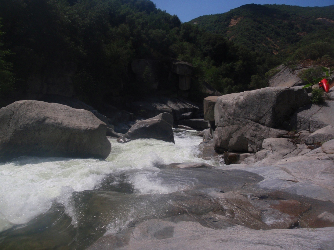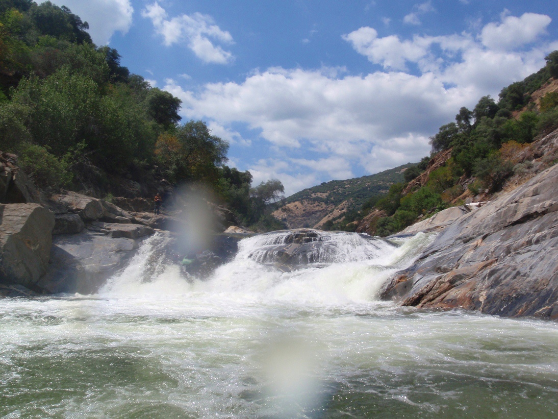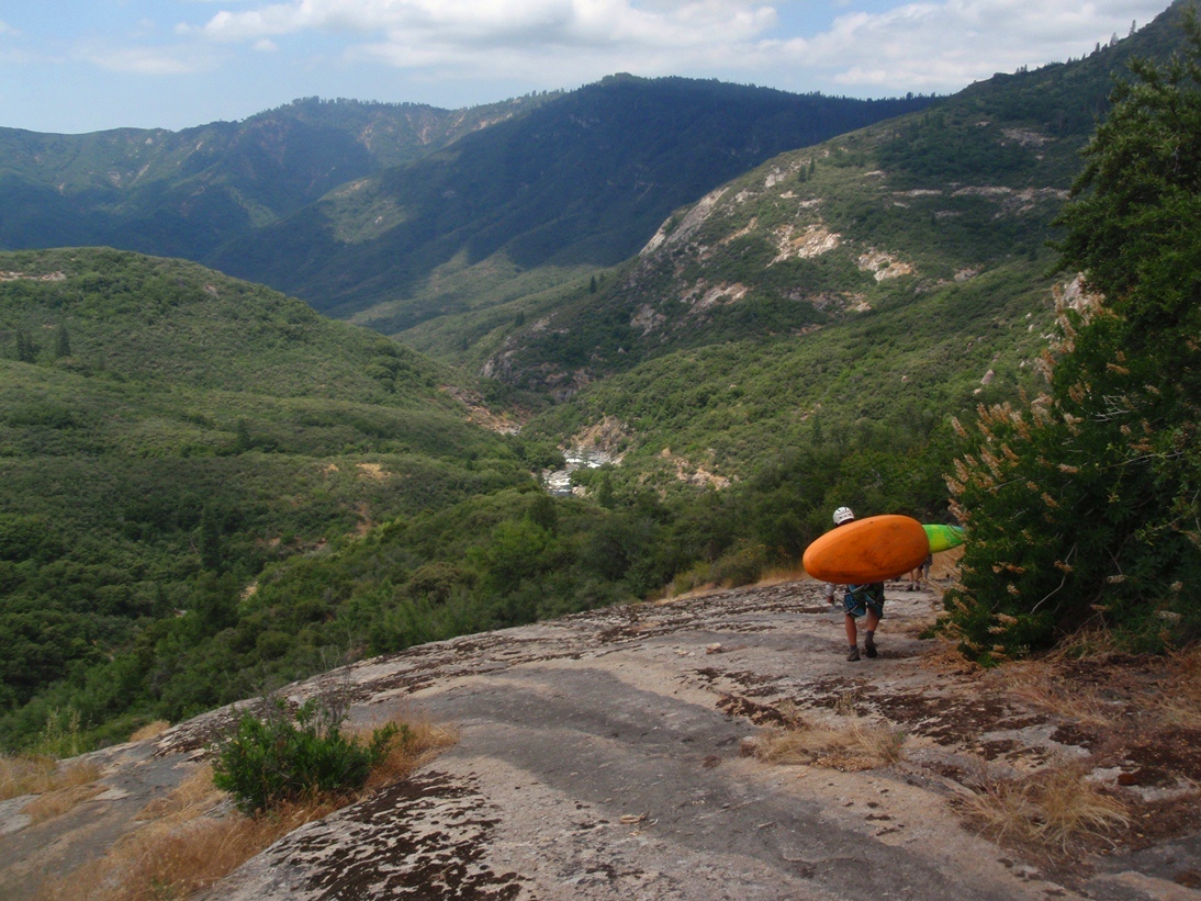 Most people choose to complete the run in 2 days though with a team of folks who have done it before it can be done in a day, though dang that must be tiring. The day starts with a 2.5 hour shuttle on dirt road. Assuming you find the trail head (i.e. where an unmarked trail drops inconspicuously off the road) you arrive at the water ~1 to 1.5 hours later. The hike is steep and poorly marked at the end so getting a little lost is common and adds considerably to the pain in the a$$ factor. Lucky for us it was a very cool July day, I can imagine with normal June/July weather in the 100s the hike would suck. Luckily the hike is all downhill and is boat draggable for about half of it. Good thing too since you are essentially crawling through Manzanita tunnels at times. Some people who get a late start in their day choose to sleep at put-in near the side creek and paddle out in a day.
