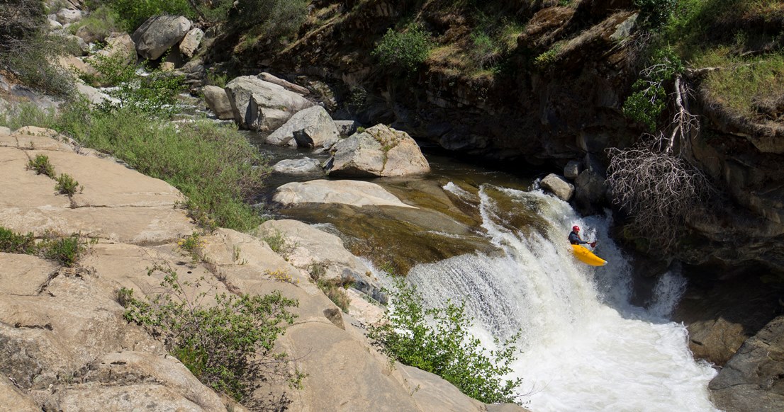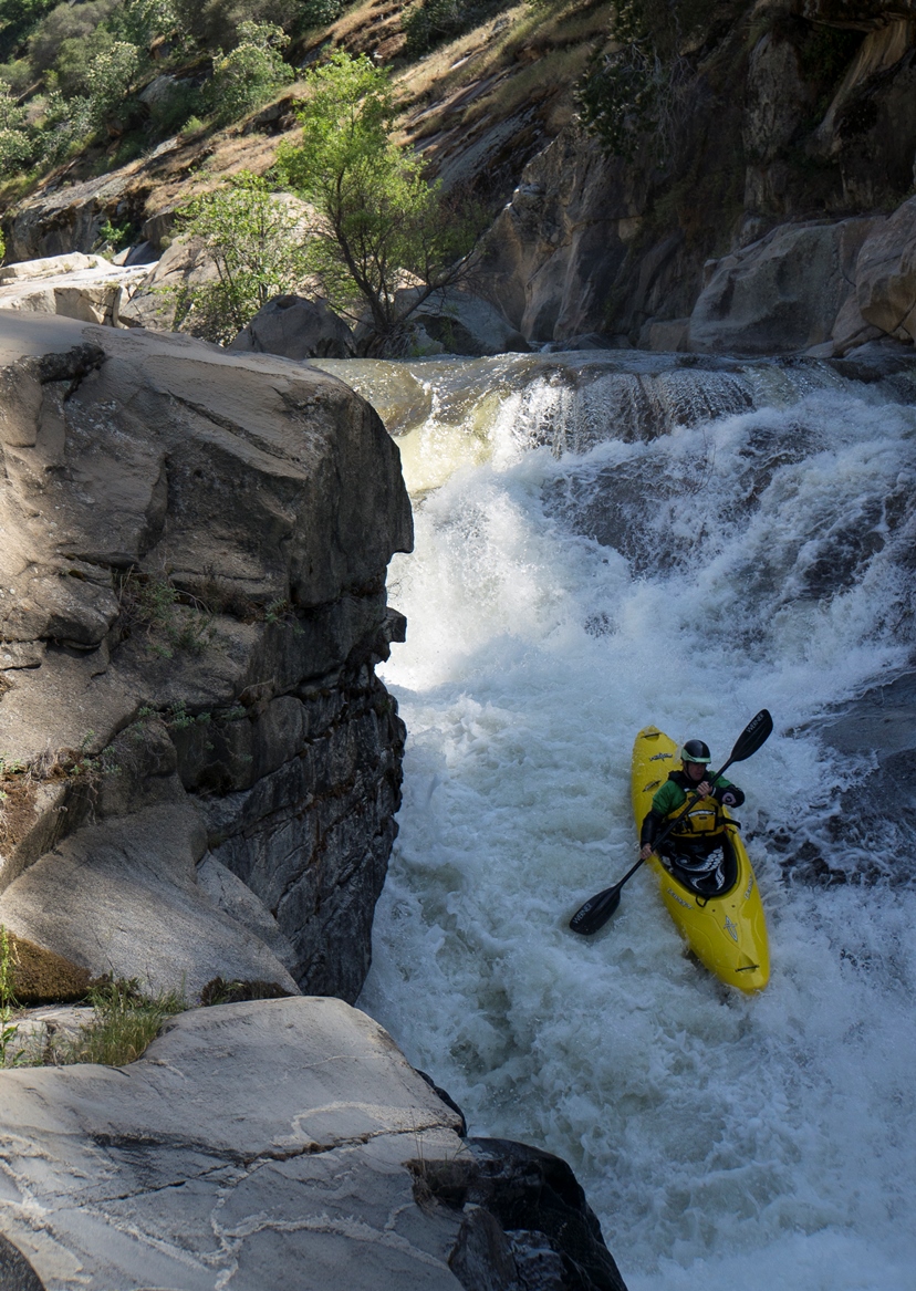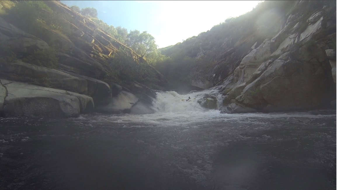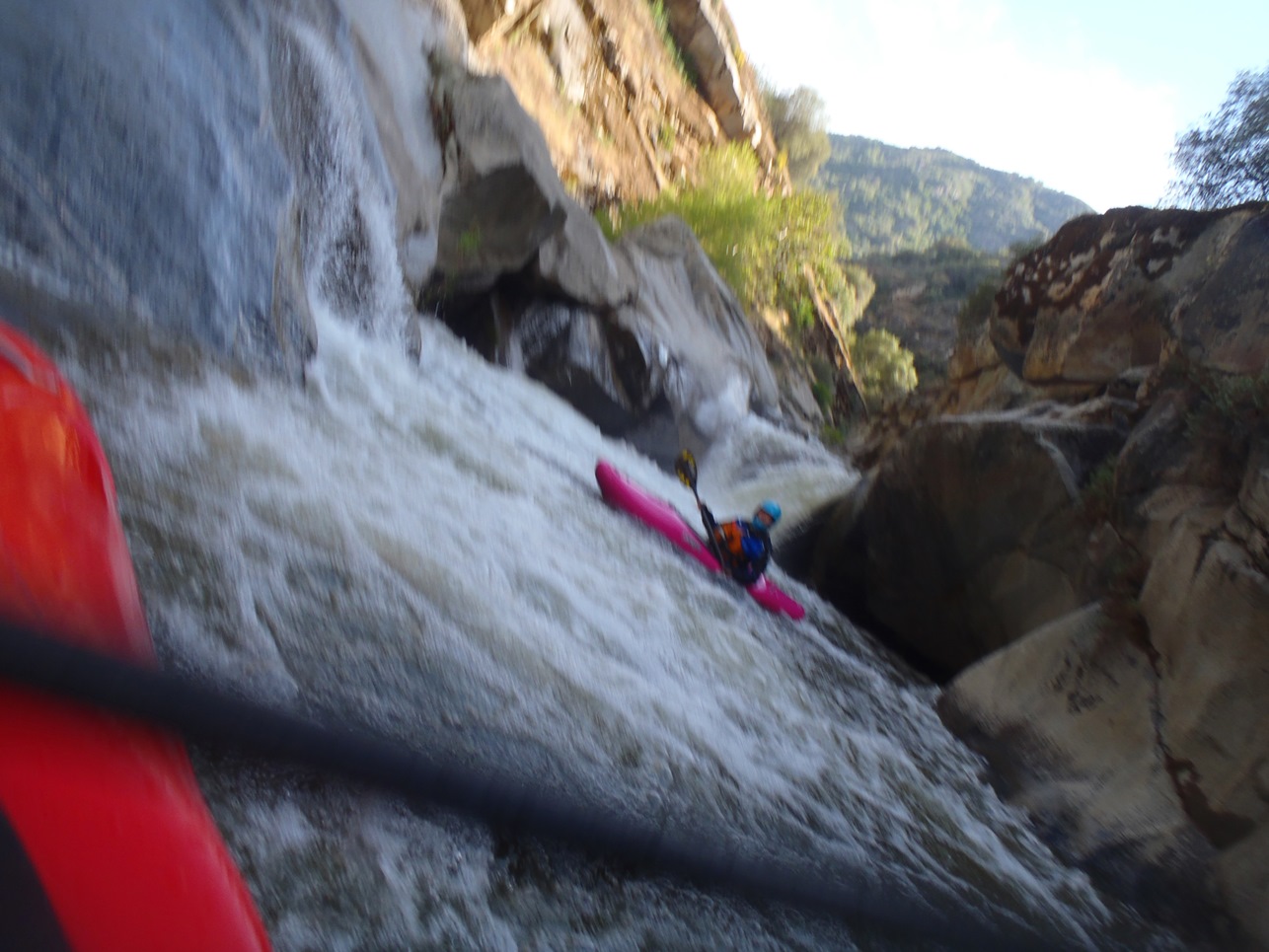 - Driftwood (V+). One junky rapid lead to Driftwood which most will walk on the left. The walk kinda sucks. I almost slipped and feel down the cliff. Getting back in also stinks. Many seal launch in gingerly without their skirts on (too slick and steep of a slope to get it on). There is a big pool below with a beach so I jumped in with my boat to swim there rather than swamping my boat. Turns out the water is shallow. Gently lower yourself to the water if you take that option. The line for those that run the drop is to act like driftwood and just plug it.