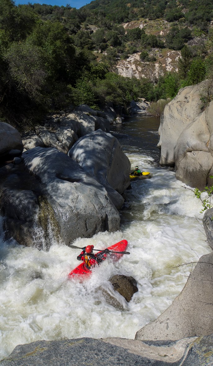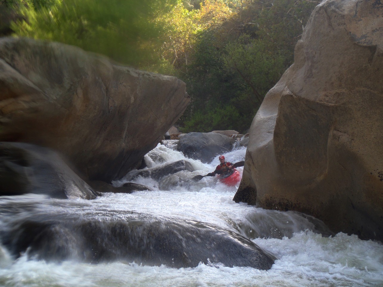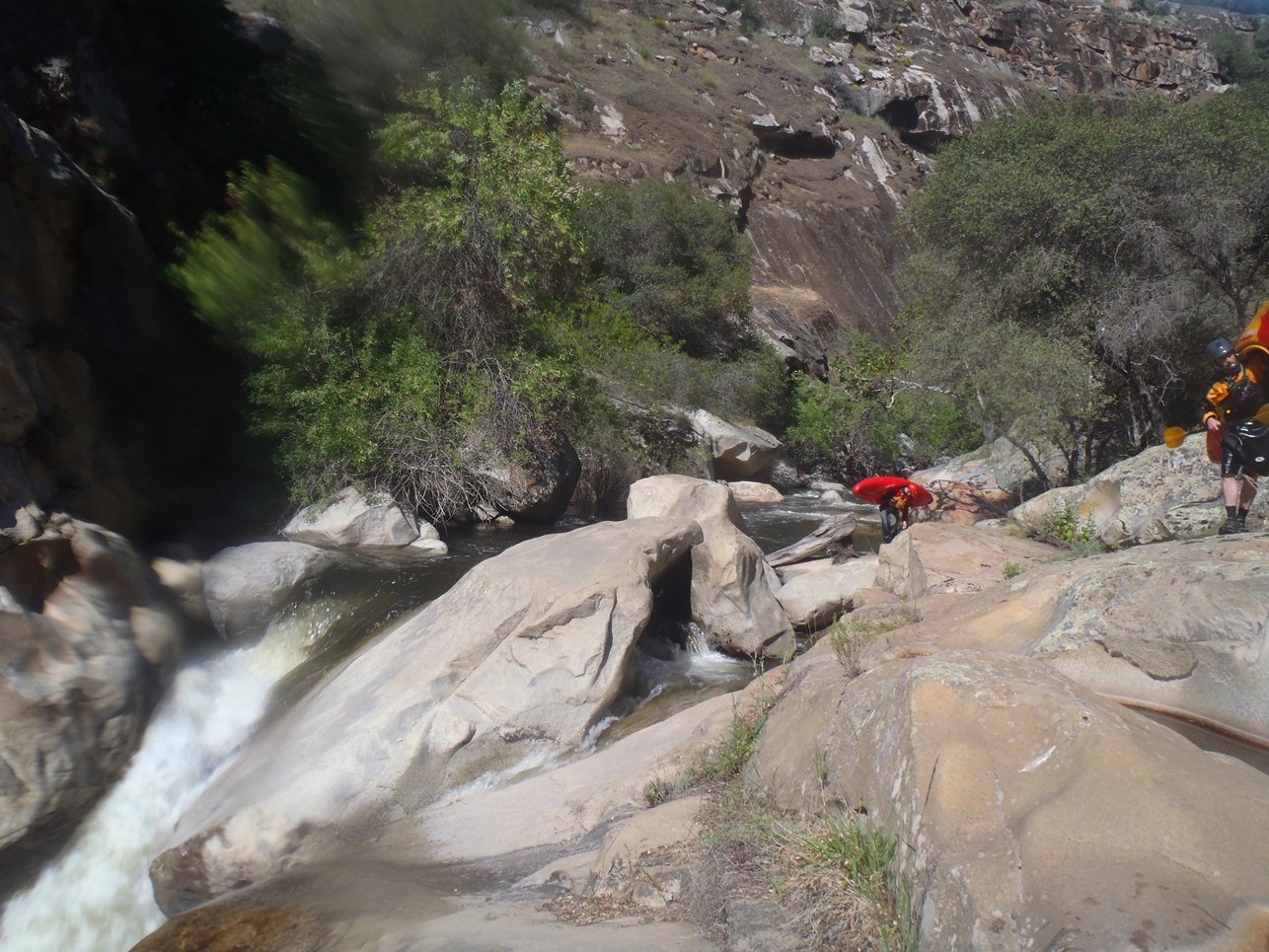 This lower section provides an easier experience of the East Fork without the epic portages see in the section above and is commonly done by locals rather than the whole run. Though... sure it does not have the long portages, but the two in our group who hiked in here stated it was not easy! Poison oak is plentiful as are blackberry bushes. And it takes 30-45 minutes in its own right. But the reward is worth it! You will get a pristine, deep, granite canyon full of slides and boofs. Be on your toes though as there are a couple of extra rapids that you may want to sneak or portage that others will route through in addition to a handful that everyone portages.