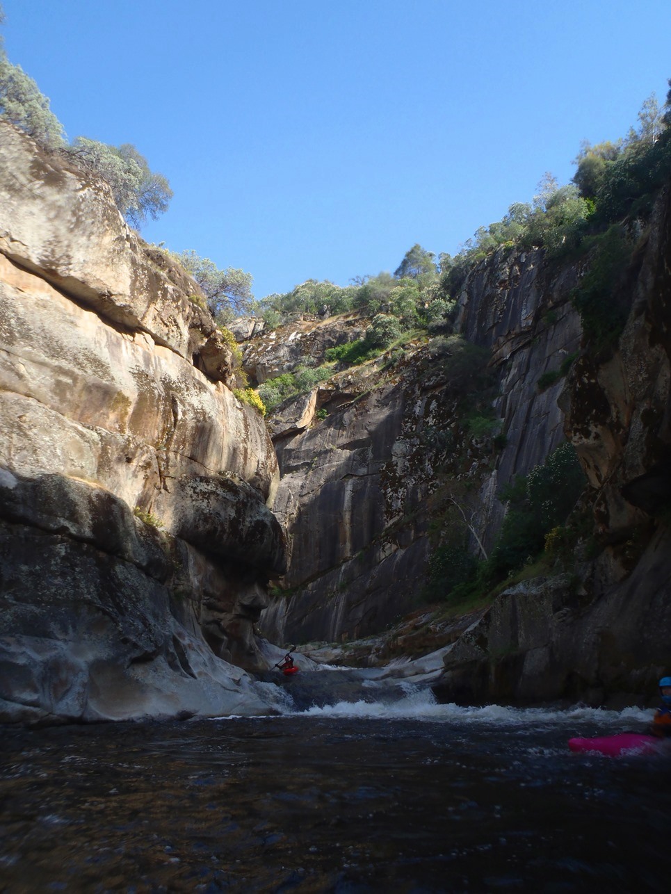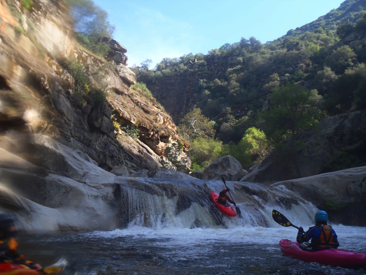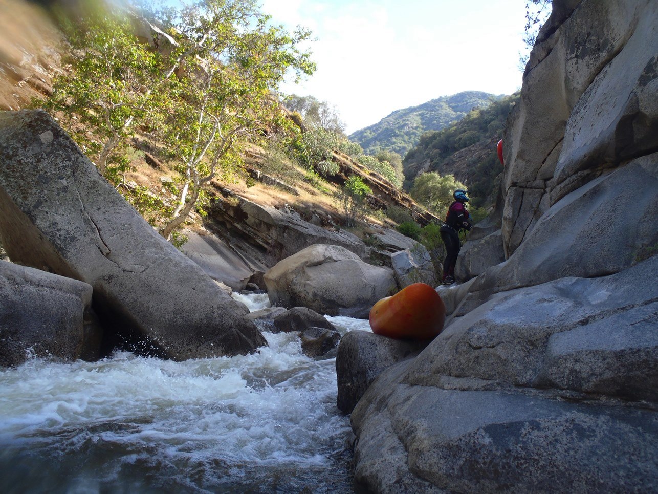 This lower section provides an easier experience of the East Fork without the epic portages see in the section above and is commonly done by locals rather than the whole run. Though... sure it does not have the long portages, but the two in our group who hiked in here stated it was not easy! Poison oak is plentiful as are blackberry bushes. And it takes 30-45 minutes in its own right. But the reward is worth it! You will get a pristine, deep, granite canyon full of slides and boofs. Be on your toes though as there are a couple of extra rapids that you may want to sneak or portage that others will route through in addition to a handful that everyone portages.