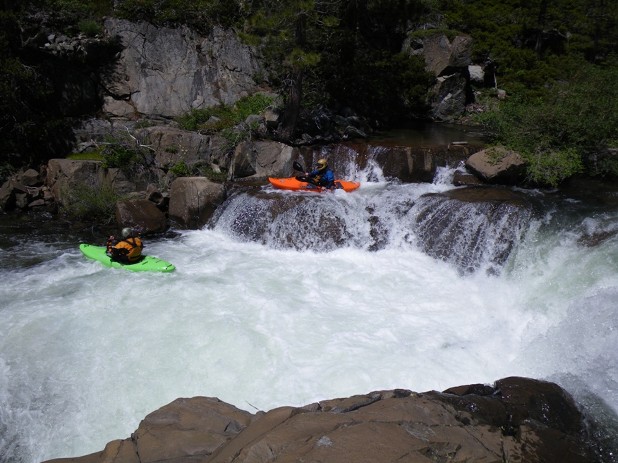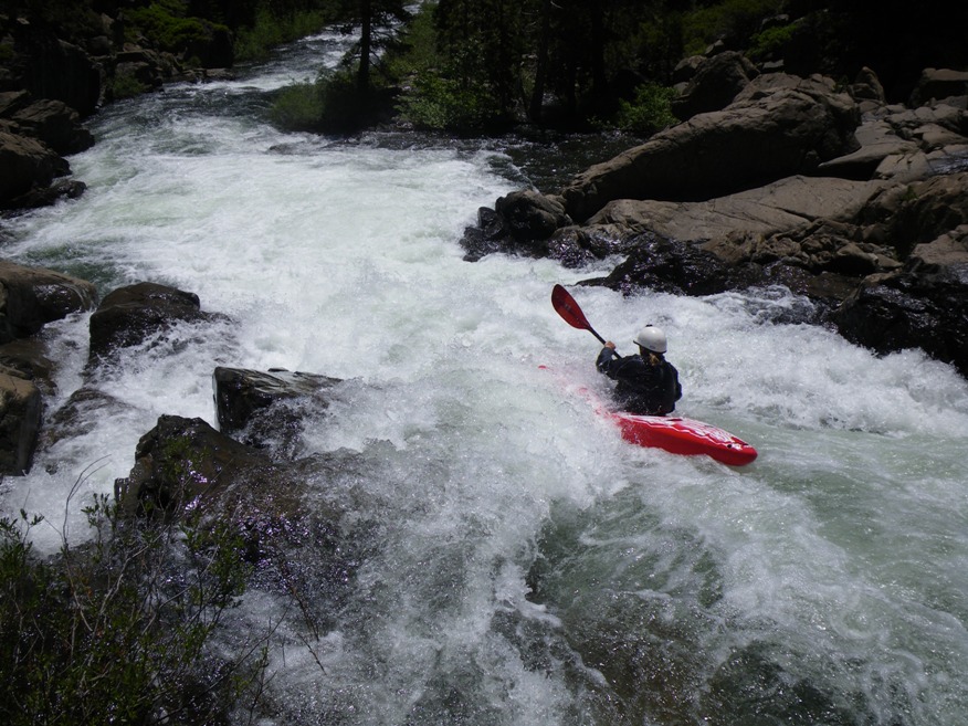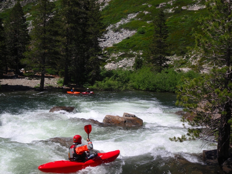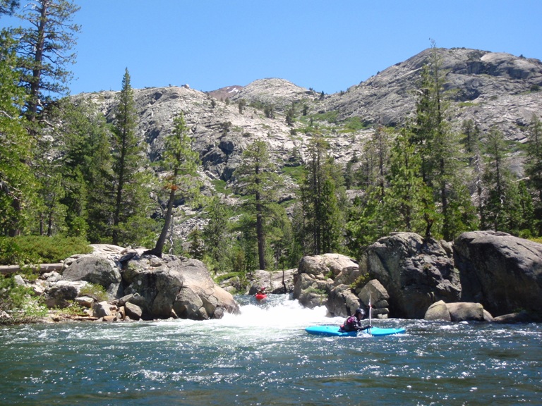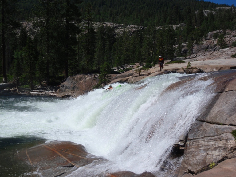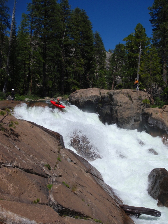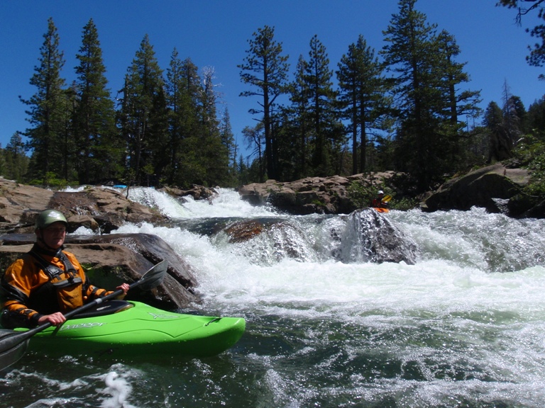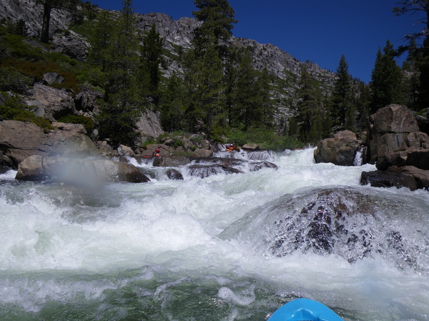 The river has some of the most spectacular scenery you can get for a class IV-V river. Normally to get granite scenery like this you would have to be a class V-V+ boater. However with Fordyce, a class IV+ boater can enjoy the feeling of being in the middle of nowhere, buried deep in the sierras. The river for the most part is class IV-IV+ with several long sections of class II that are occasionally interrupted by a quick III-IV. The exceptions are the start and the end which are action packed and are where the bulk of the time spent on the run will occur. The rapids in these sections are mostly class IV+ with a few V and a few V+ that many/most folks portage. All the hard drops on this run are portagable, and I believe all would be pretty simple to portage. If you don't know the lines, expect to take a full day to do this run. We had Hunkapillar, Bruckner and Tulley with us who had done the run before but with a large group and several of us documenting the river (pictures and video) in addition to a 45 minute lunch, took nearly 6 hours to complete the run including the lake paddle. With a smaller group and less picture taking you could finish in 3-4 hours your first time down I think. But then again, why hurry through such a pretty place?