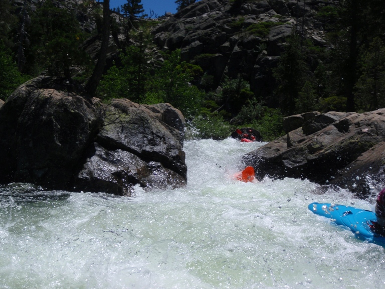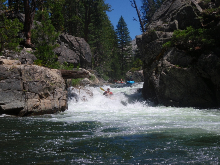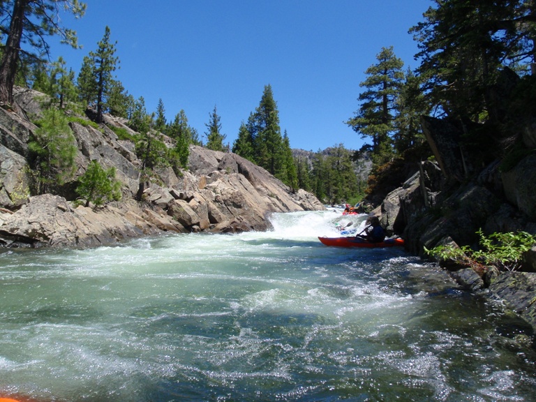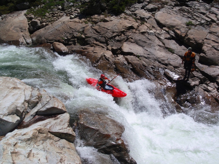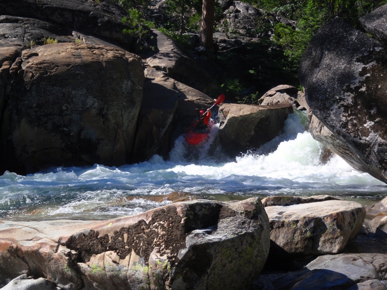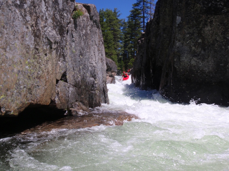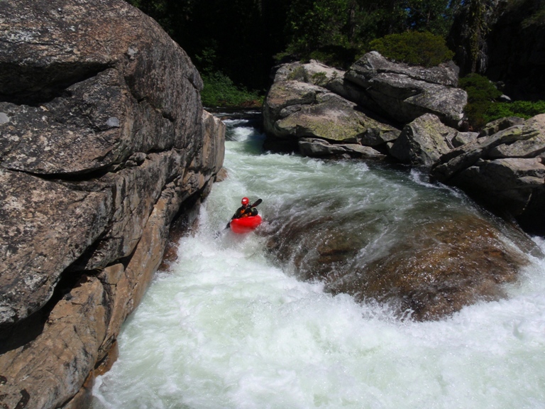 - Big Squeeze (IV+). A few drops lead to a last minute chicken eddy on the right that you can hop out and look at the crux and most walled out section of the drop. Or you can just drop into the chute that has vertical walls 6 feet apart and punch the two large hydraulics held between its granite boundaries. Another really fun and unique rapid.