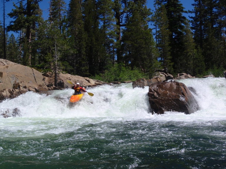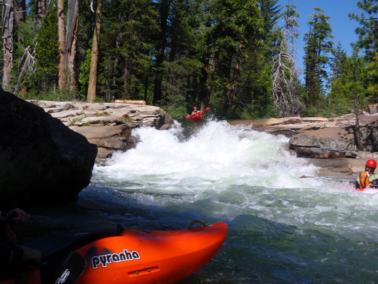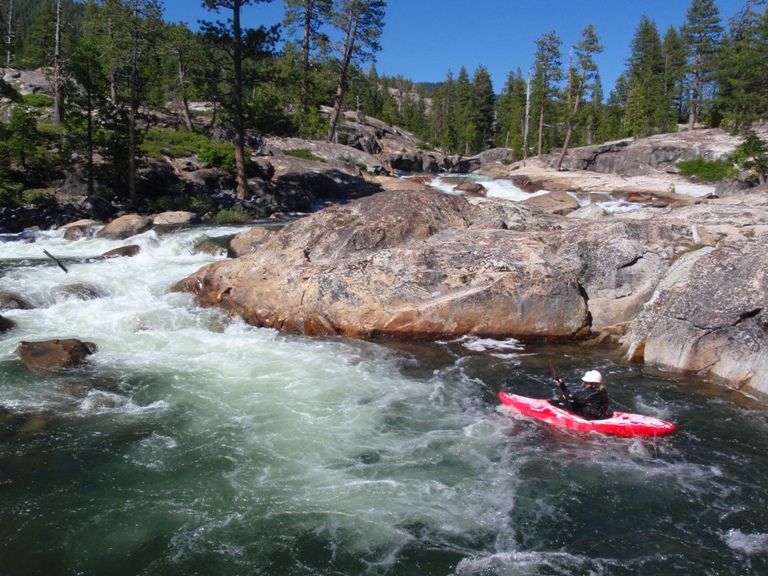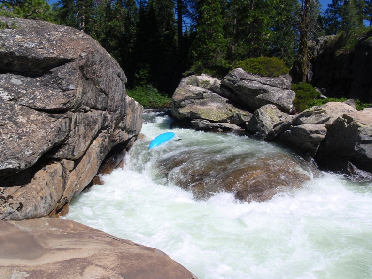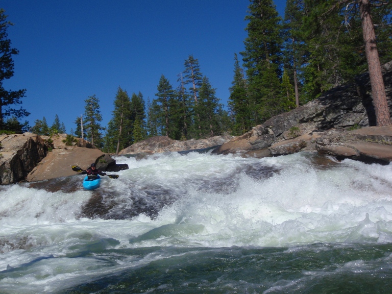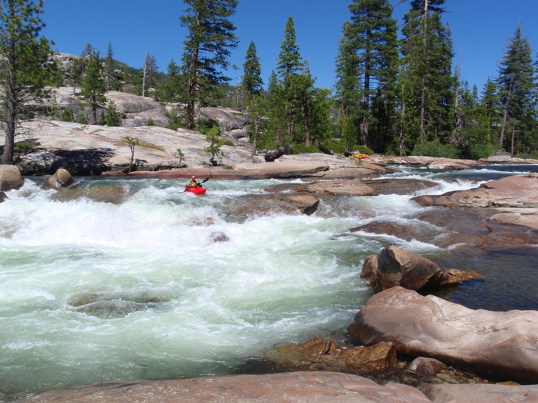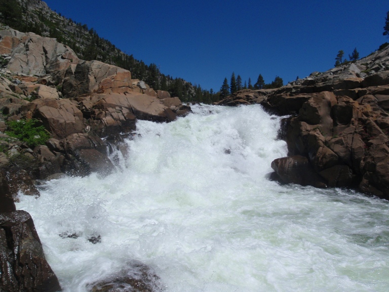 - Big Squeeze (IV+). A few drops lead to a last minute chicken eddy on the right that you can hop out and look at the crux and most walled out section of the drop. Or you can just drop into the chute that has vertical walls 6 feet apart and punch the two large hydraulics held between its granite boundaries. Another really fun and unique rapid.