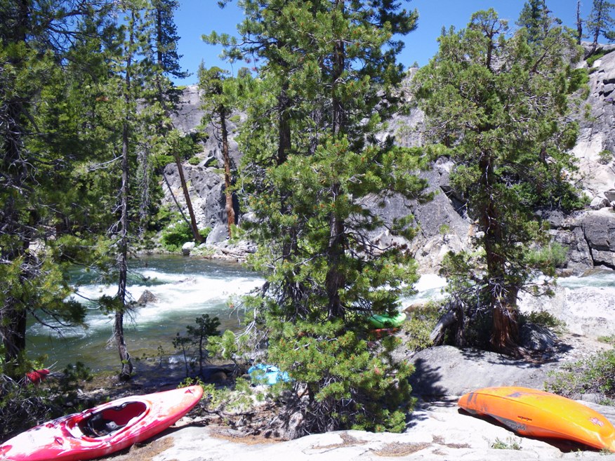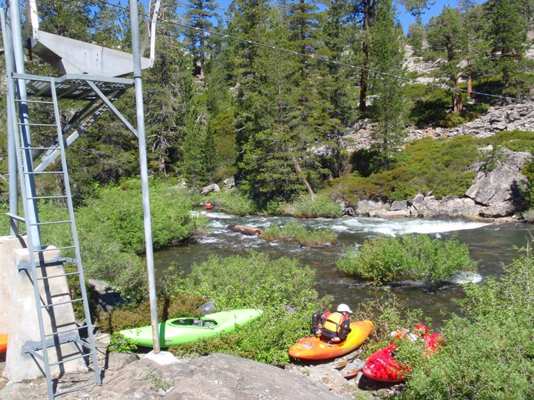Take-out: From Highway 80, take Highway 20 towards Grass Valley a few miles. Just after Camp Marine Sierra take a right on Lake Spaulding Road and follow to the boat ramp. Parking is $7 for the day.