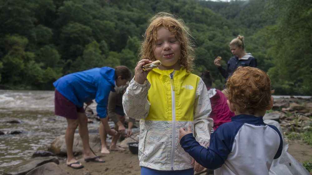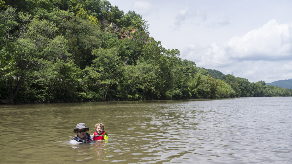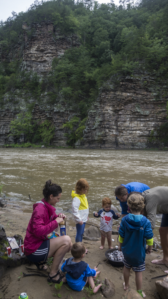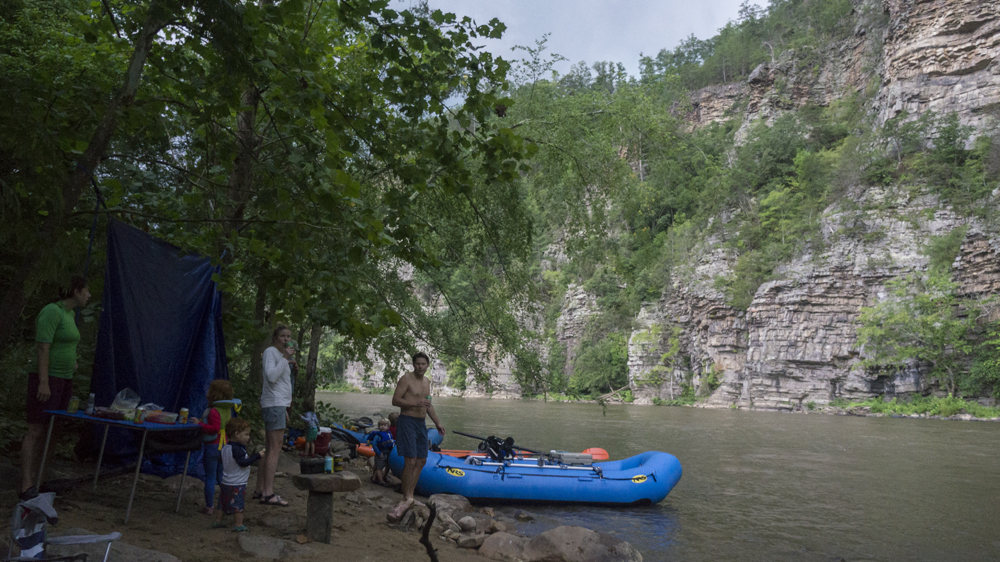 Update 2023: Well, on the other side of having a second kid and having open heart surgery, we got the chance to get back in here. This time for both Aster and Tobin's first overnighter. We put-in with the Janneys and Sanborns at Hot Springs and took out at Wolf Creek, we planned to camp at a primative site on Huff Island just upstream of Paint Creek, but we couldnt find it. Then the beach at the bottom tip was occupied with campers, so we continued down and ended up camping just across from Paint Rock itself. At 2,000 cfs the beach was nice and there was a slightly angled slop high enough off river level for two 4-person tents and then a slightly over grown spot further in for our 6-person tent. Bring some loppers and it would be a great camping spot on all regards. As it was, it was still a cool spot in a cool location and perfect for our group.