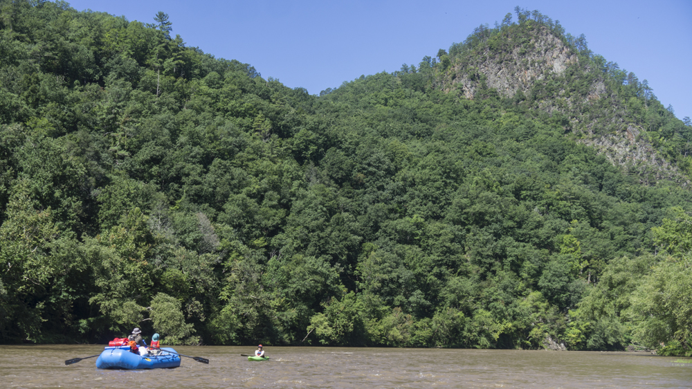 For me though, the rapids on this run were easier than I had hoped. I was hoping for more action, like the Hiwassee. But instead found just a fraction of the action. However, the surprise on this run was the scenery. The Paint Rock bluff are at the start is spectacular and there are a few more rocky outcroppings downstream at river level and high up on the mountains surrounding the river. This is the highlight of the run in my opinion, with the whitewater being just enough to make it worthwhile as a easy whitewater float.