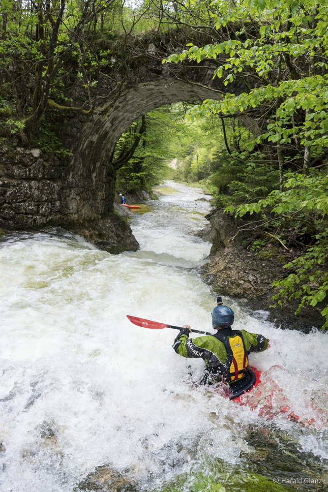 - Under the Bridge (IV+). One of the harder drops of the run, this one is worth scouting on your hike up. It is below an old stone bridge just downstream from the bridge you hike over on your way up. You want to enter far right and then drive to the left and carry left momentum. The hazard is the right wall which has a nasty pocket.