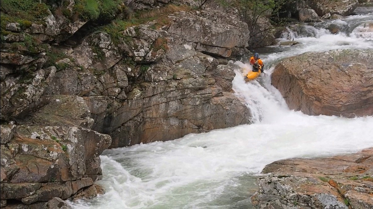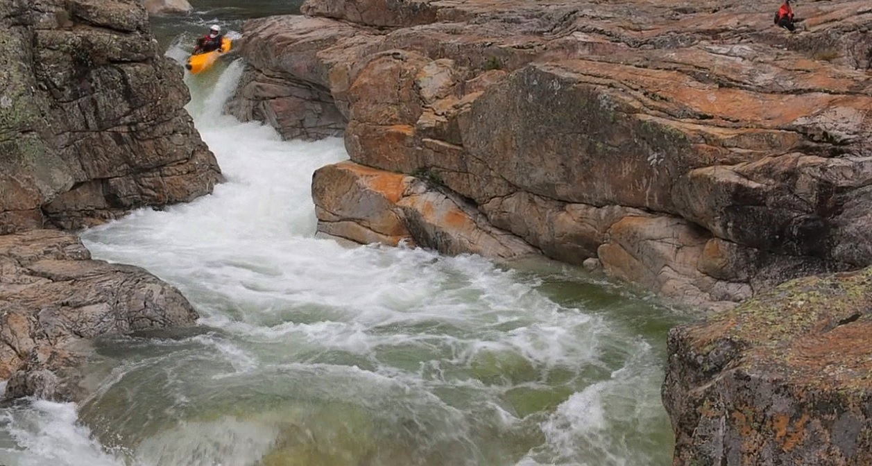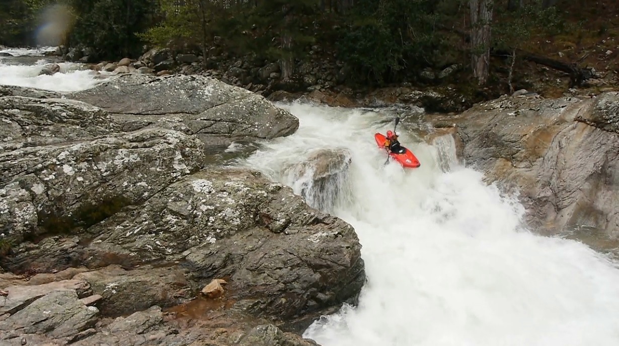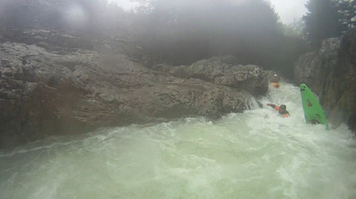 - Boof into the S-turn (IV+). Boof far left on the first ledge, at our flow the hole was super mean. At lower flow it is much friendlier. Exit down the ramp into the hole and around the corner where a pool awaits. This start to mellow out again.