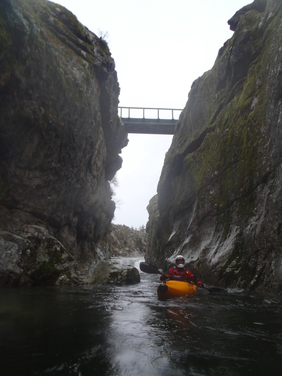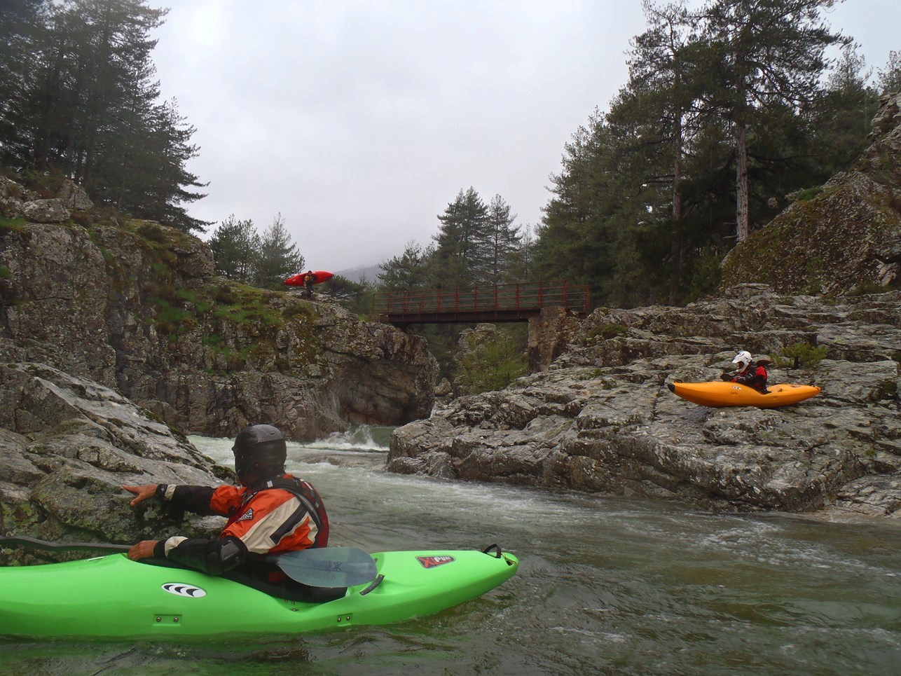 - Bridge Gorge (IV-). When you see the gorge with the foot bridge over it, head far far right for a mellow slide. It is really only class III... but if you mess it up the hole on the left was a bad one. Just downstream the Calasima comes in on river left and you have one last rapid.