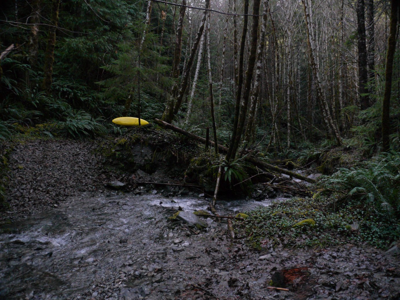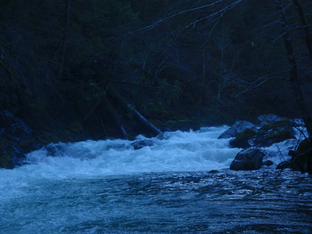 Put-in: Continue up the South Fork Rd for another mile and turn right over the river. Continue for 2.8 miles up to the large gravel lot on the right. Park at the far side of it. The trail is on the far side and follows a nice road for 3.2 miles. At that point, we dropped off a spur rd to the right and followed it down to where we could see the river. We then bushed whacked 50 feet to the river. I think this is where I got a bad case of poison oak. A few mile markers for the hike: 1.5 miles to the overlook on the right, 2.2 miles to the creek crossing, 2.7 miles to the washout, and 3.2 miles to the spur road with the water coming 0.2 miles later.