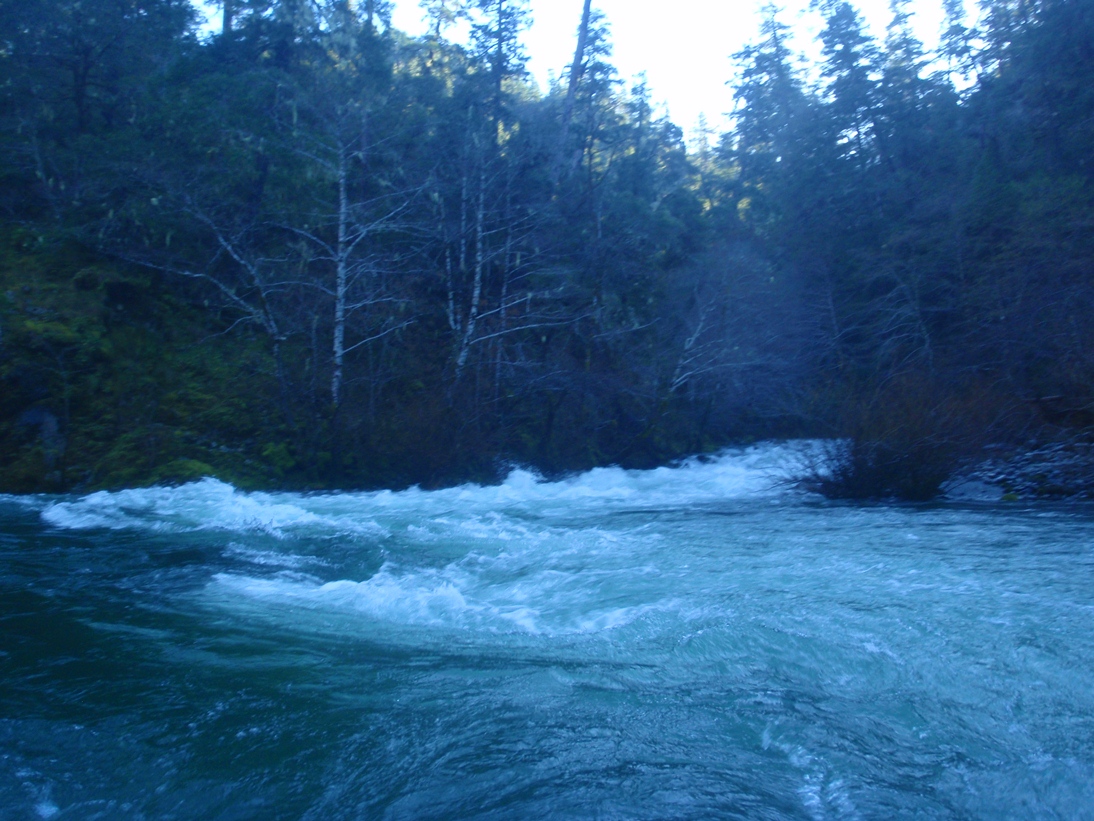 Take-out: Drive up the South Fork Road some 14 miles from Highway 199. Come to Steven's Memorial Bridge (sign on the far side of the bridge). There is a small turn-out on the right just past the bridge or a large gravel parking area 100 feet further on the left. There is a nice trail that comes up river right as well.