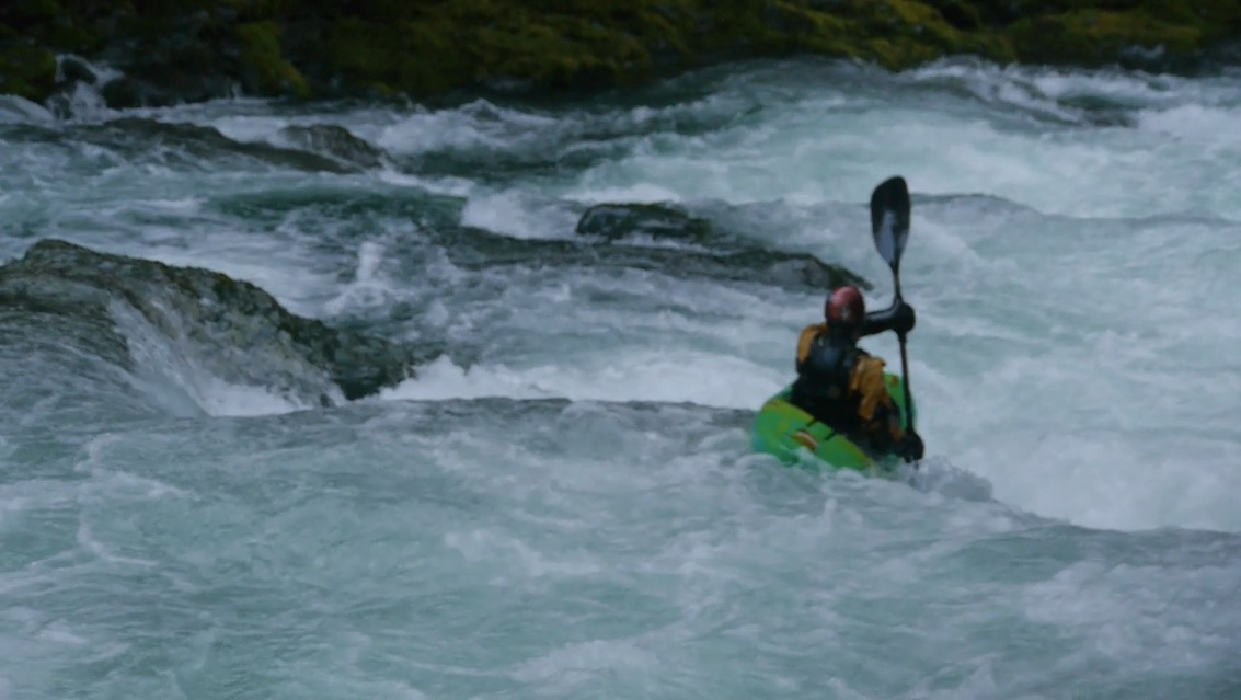 - Gander (IV+). The top is split into the channels. Both probably go. At our flow the right side had a cross feeding hole that could feed you into a pocket in the wall. I was the only one to hop out to scout/film from the top and thought it was more trouble that it was worth to explain the line to them. The left side was straight forward ramp to a hole. The second tier was a nice boof in the middle. At lower flows I know you are forced into the meet of the ledge a little more. Downstream is 100 yards of read and run class III-IV that leads to the lip of Honker.