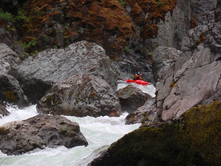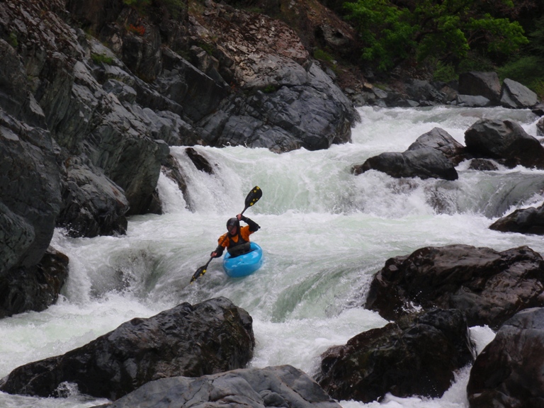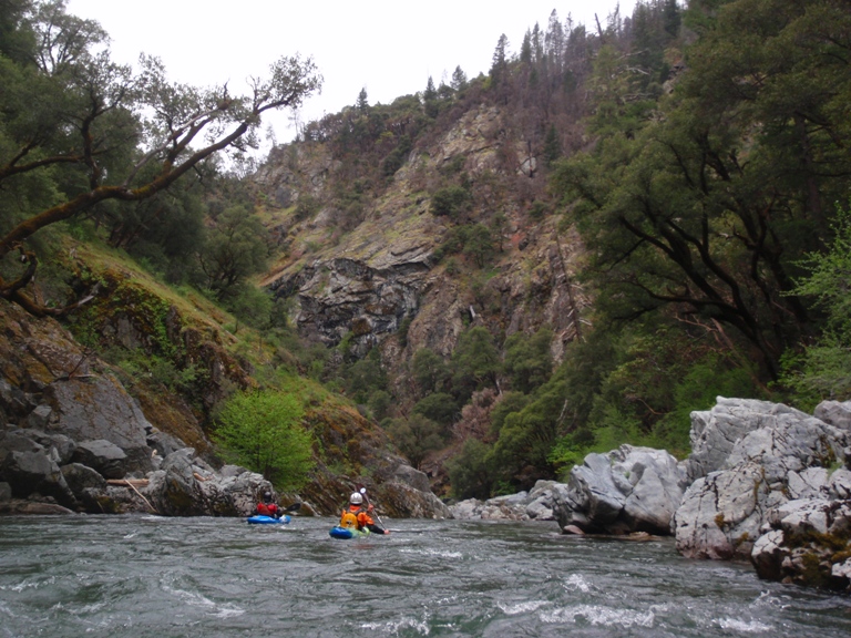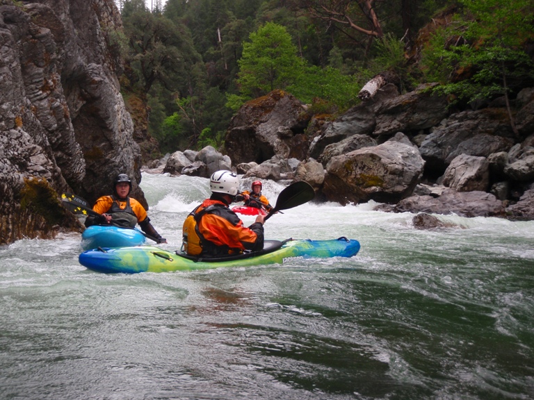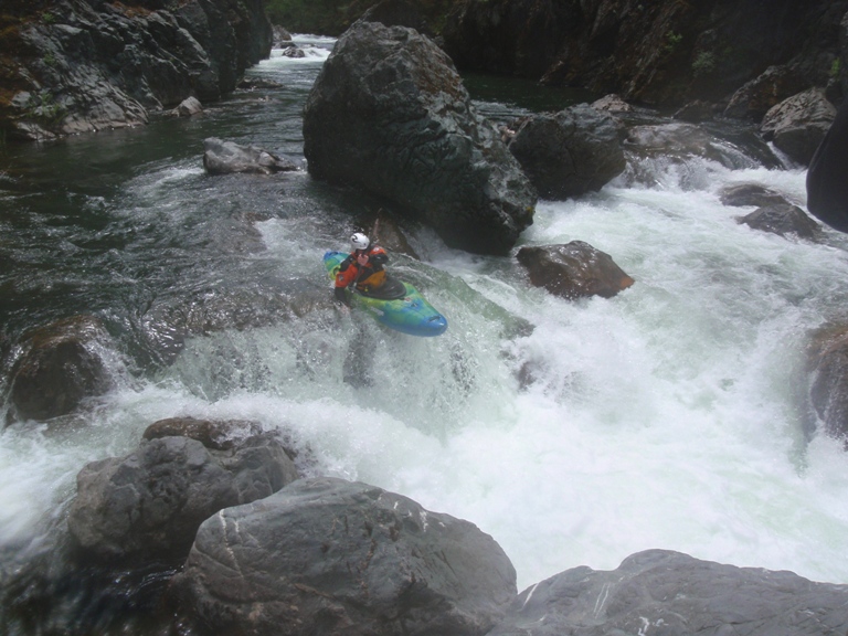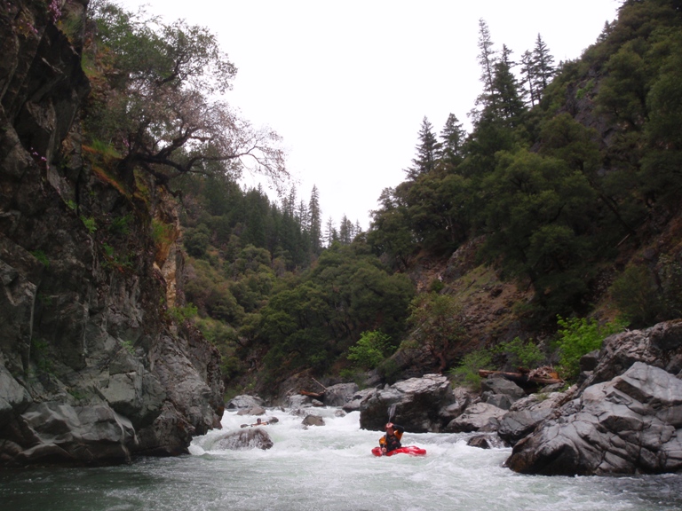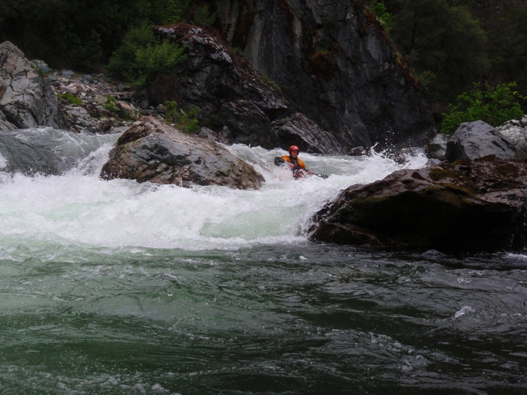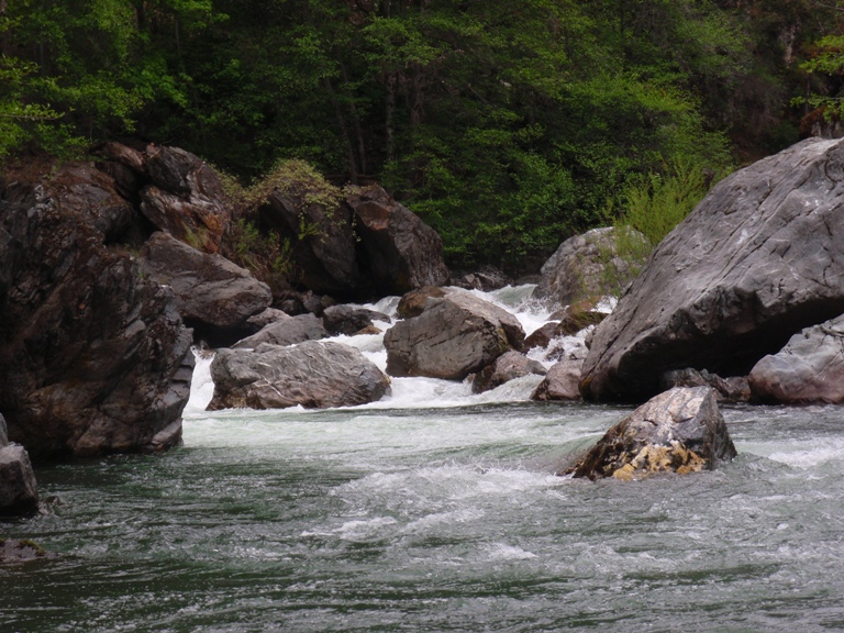 In conclusion, this day was interesting. The two gorges offered many good rapids, several of which will get the heart pumping though only a few of which would be deemed classic. The scenery was spectacular, picture the best sections of Burnt Ranch on the Trinity and that is what you have for the majority of the run. When the run is not in steeper more gorged out sections, you maintain pleasant scenery. Although the paddle in (7 miles) to the first gorge is class II (with a small mini gorge of class III-IV) is goes surprisingly quick. However, the 2 miles between the first and second gorge go surprisingly slow as the water pools up much more requiring active participation in the downstream progress. In all, this run is very worth doing. If timed properly with the surrounding rivers you could easily make a three day weekend out of this run, New River Gorge, and North Fork Trinity. That would make for what would surely be a fun filled exciting weekend. We got there a bit early in the season (May 9, 2010 - 140% snow pack year and still cold) and ran this run, New River Gorge and Coffee Creek since the North Trinity wasn't going (and actually, do to a shoulder injury relapse I opted out of the New River Gorge). Anyways, a nice place to see with some fun rapids. I am sure I will boat it again at some point.