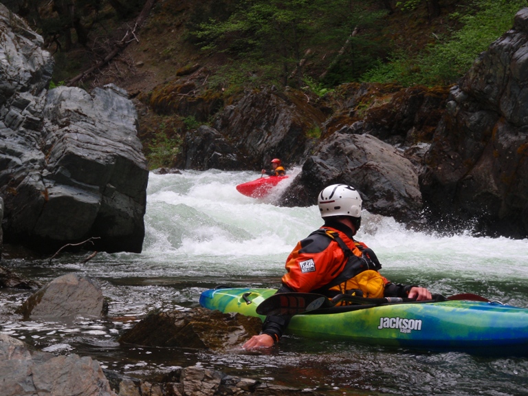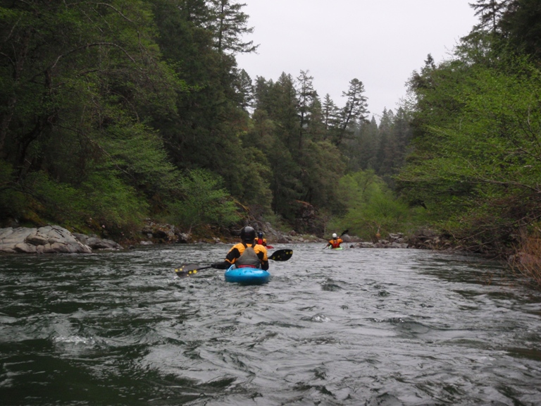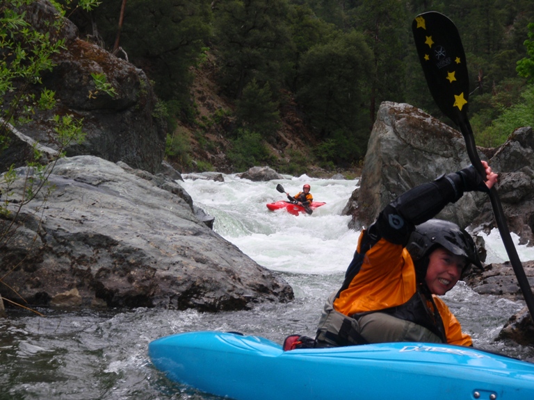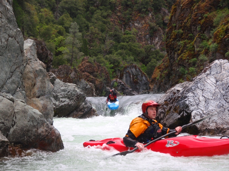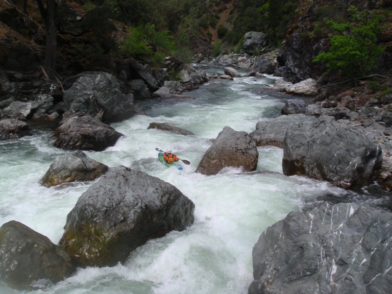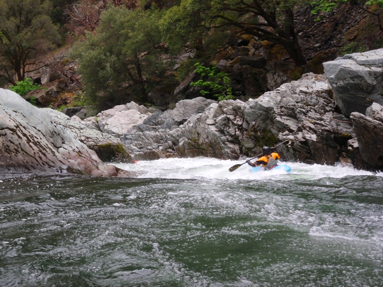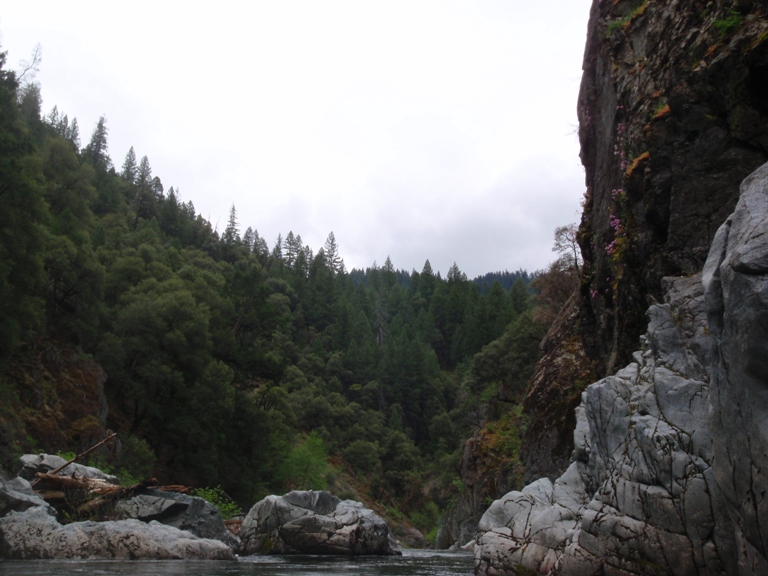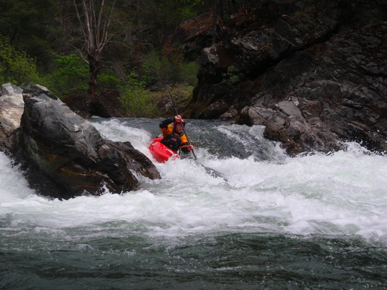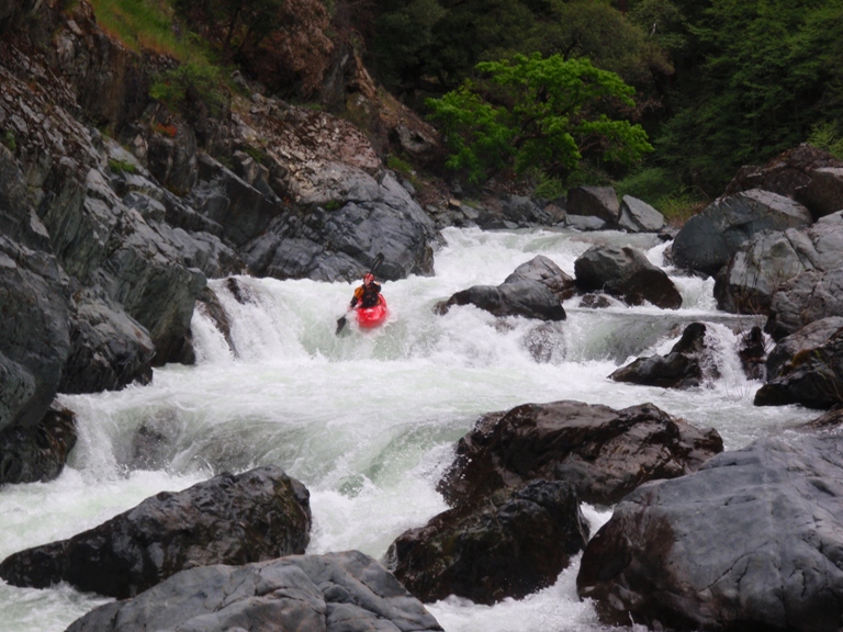 In conclusion, this day was interesting. The two gorges offered many good rapids, several of which will get the heart pumping though only a few of which would be deemed classic. The scenery was spectacular, picture the best sections of Burnt Ranch on the Trinity and that is what you have for the majority of the run. When the run is not in steeper more gorged out sections, you maintain pleasant scenery. Although the paddle in (7 miles) to the first gorge is class II (with a small mini gorge of class III-IV) is goes surprisingly quick. However, the 2 miles between the first and second gorge go surprisingly slow as the water pools up much more requiring active participation in the downstream progress. In all, this run is very worth doing. If timed properly with the surrounding rivers you could easily make a three day weekend out of this run, New River Gorge, and North Fork Trinity. That would make for what would surely be a fun filled exciting weekend. We got there a bit early in the season (May 9, 2010 - 140% snow pack year and still cold) and ran this run, New River Gorge and Coffee Creek since the North Trinity wasn't going (and actually, do to a shoulder injury relapse I opted out of the New River Gorge). Anyways, a nice place to see with some fun rapids. I am sure I will boat it again at some point.