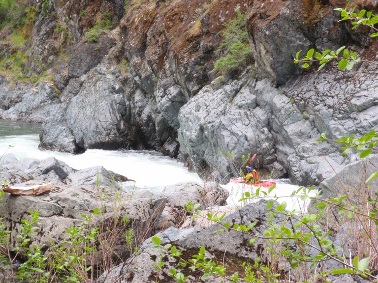 Triple Drop (V- to V). It would be best to scout on river left (and portage if so inclined). We ran the left side of the first drop, avoiding the mid river flake. Then made a 90 degree right turn around some sieves and headed downstream to two stout holes. These may turn into bad holes with more water, even at these flows you wanted to get your nose up to get through them.