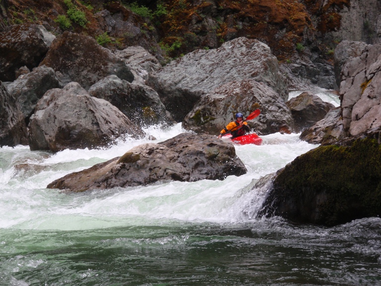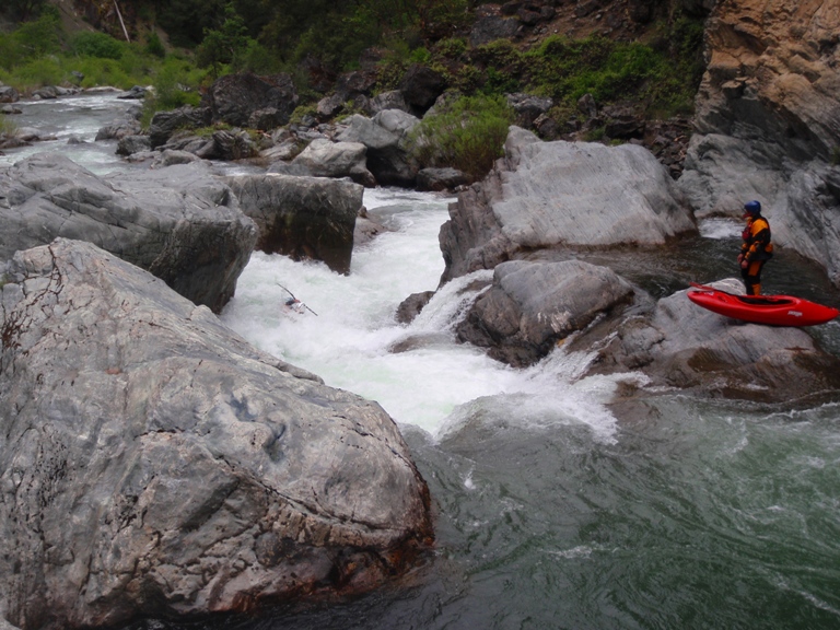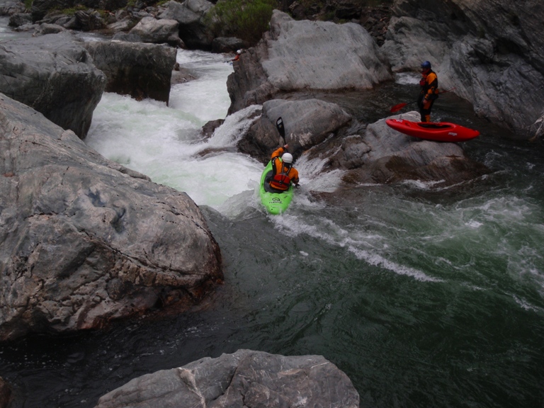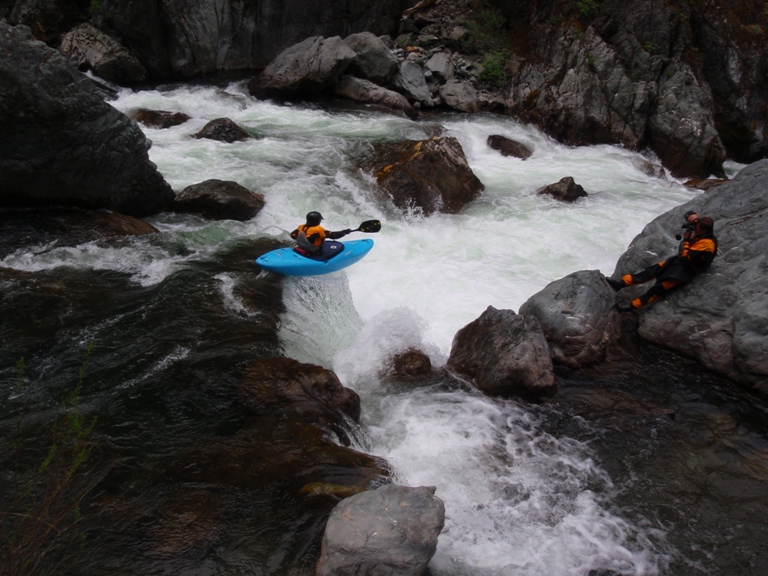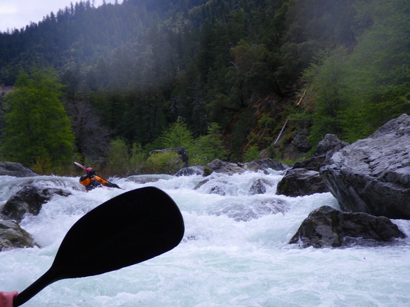 The Last But By Far Not The Worst (IV to IV+). Paul and Ben ran down the right and that looked fun. I boofed the left and landed myself in a chute against the left rock. From there, there was some rock dodging. Great drop and good end to the run!