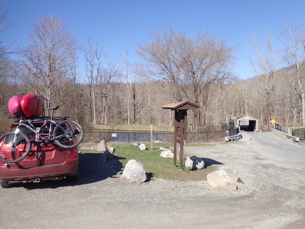 Take-out: From Kent CT, head south on US-7 for 5.5 miles. Just after you cross the water pipes feeding Cedar Hill Pond into the Power house below, turn right and park down at the water.