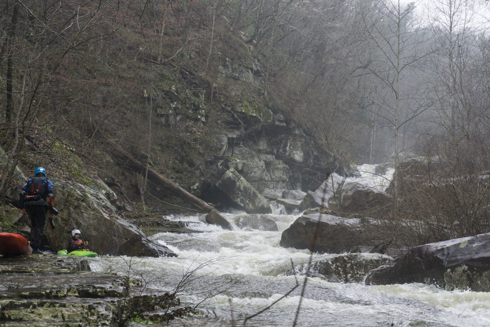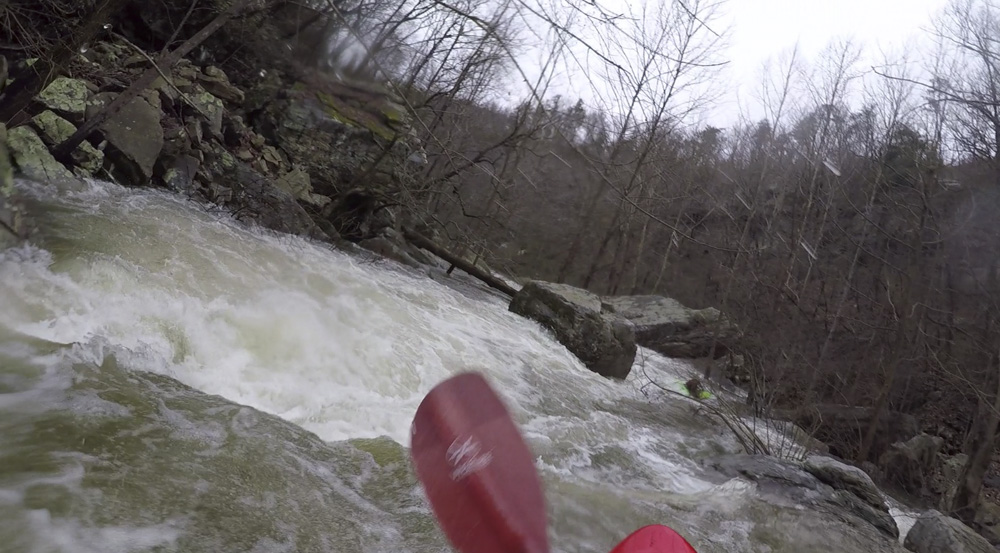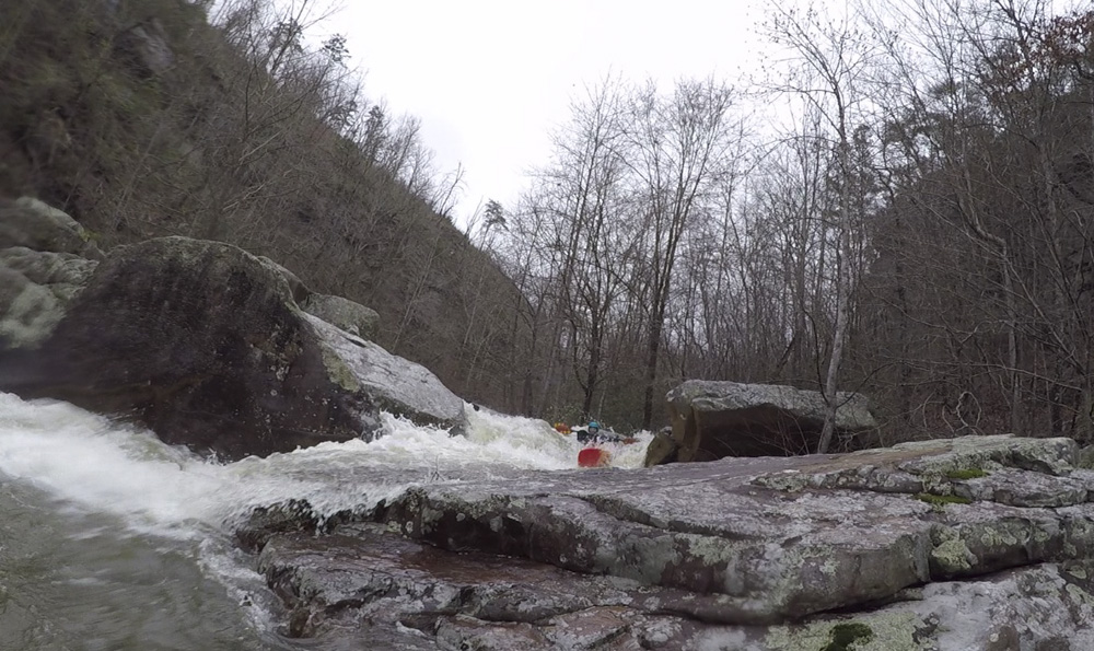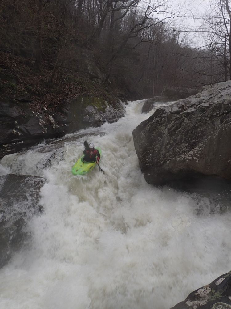 Below put-in, you get a nice waterfall to warm up on. Below you flirt with an undercut wall and caldron. The river then quickly enters boulder gardens where you will boofing through some large holes if the water is up. Next, you will find your self on a long low angle slide which then tilts to be a steep angle slide. It is big, but it is also super straight forward everywhere. Below, is the biggest and most dangerous rapid. Gorilla Constrictor is a stout drop, I would say more class V+ than V at our flows. It is multi tiered, with big holes, an undercut, and very in play sieves. Additionally, the outflow goes into more sieves. Jim styled it, Diane and I used the trail on the left to portage. Downstream, another slide with a sticky hole on the left ends the bedrock and takes you back to boulder gardens. The exit of the hard stuff is a narrow hallway that leads to a slopping left off angle ledge that you want to run middle and with a good noise lift. The eddy on the right tends to recirculate people back into the hole. Below, the river mellows out with one more congested rapid before you hit the Little River below. A quick few minutes later you get to take-out.
